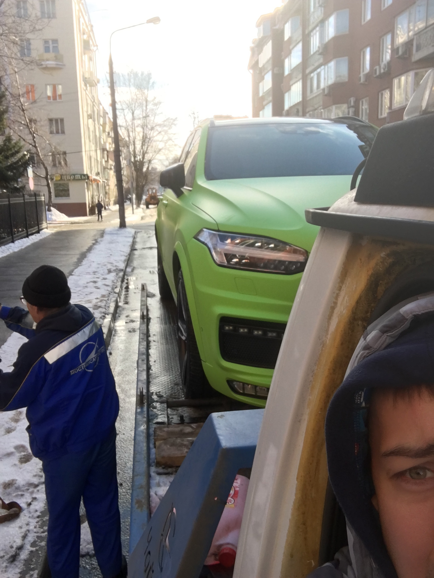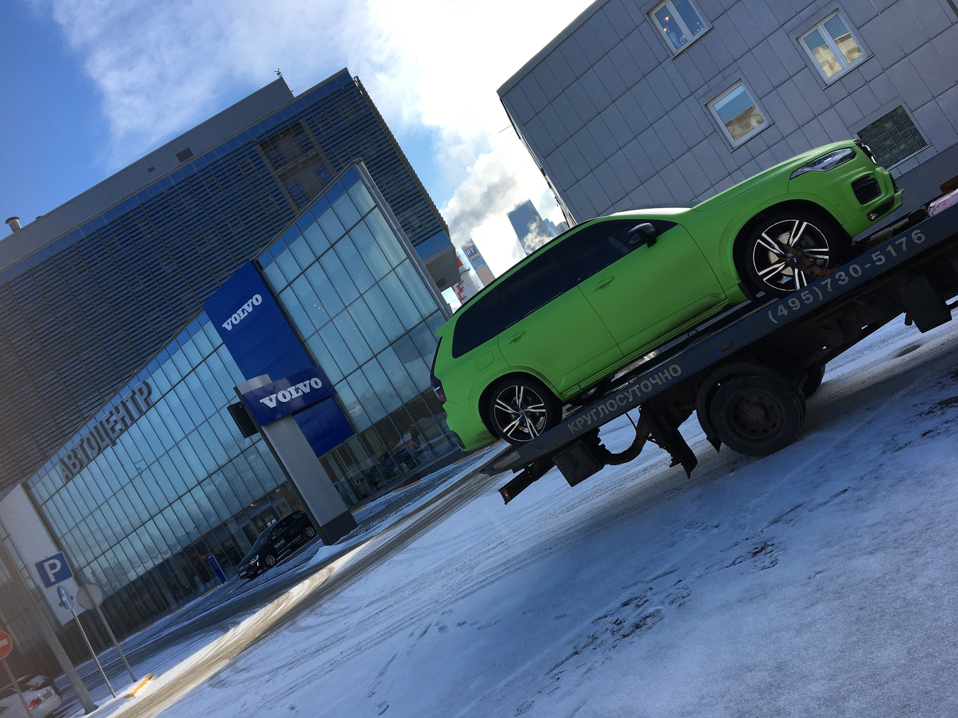Видимо машина решила до последнего не даваться в руки докторов. Но ехать надо. И вот все мои попытки открыть/закрыть машину, дать ей подумать над своим поведением, по нажимать все что имеет отношение к ручнику не увенчались успехом. Но есть Volvo On Call, звонок оператору и просьба забрать мою машину МАНИПУЛЯТОРОМ так как я во дворе и машину не сдвинуть так как рядом куча других машин и я заперт с 3х сторон…