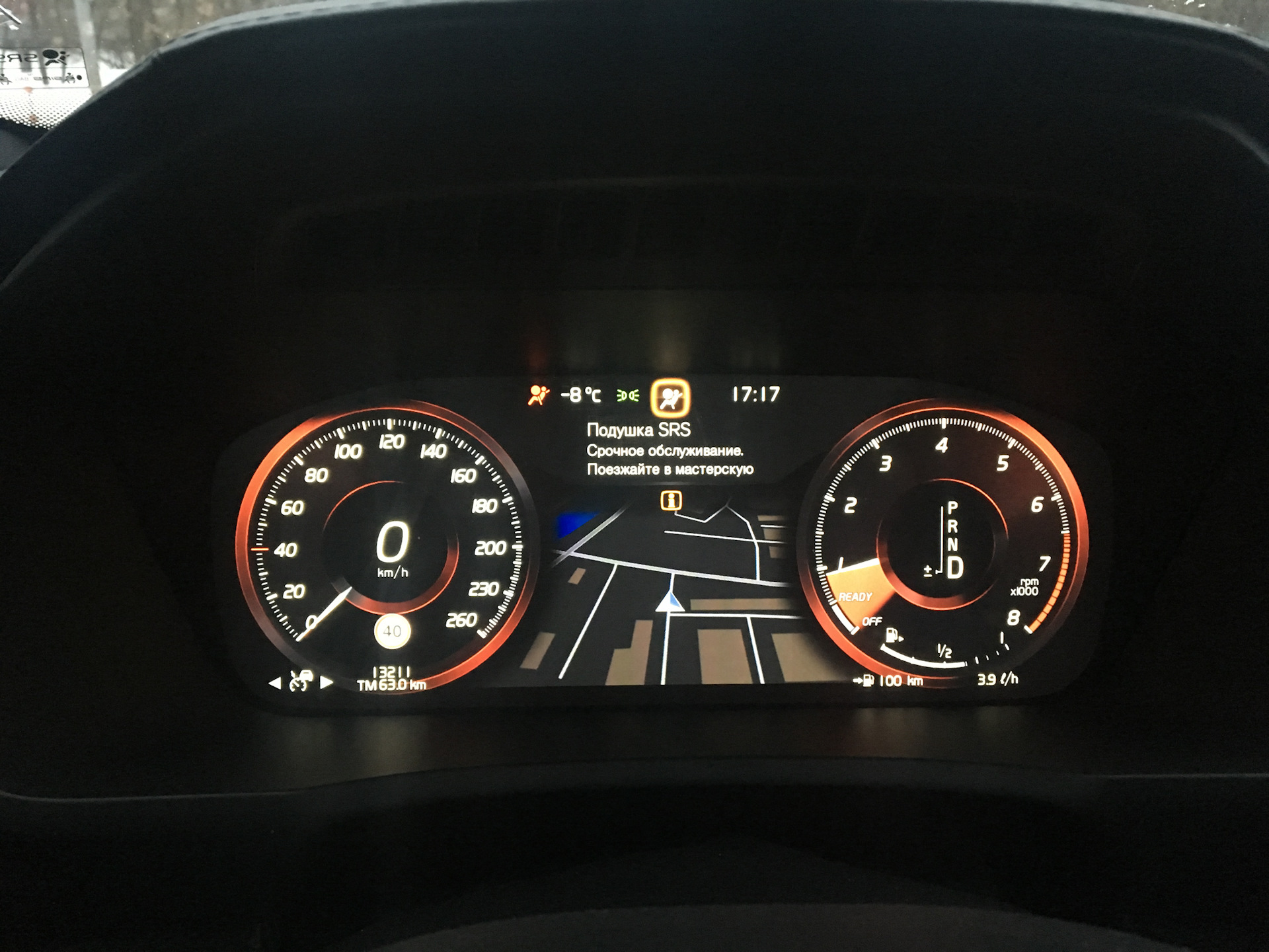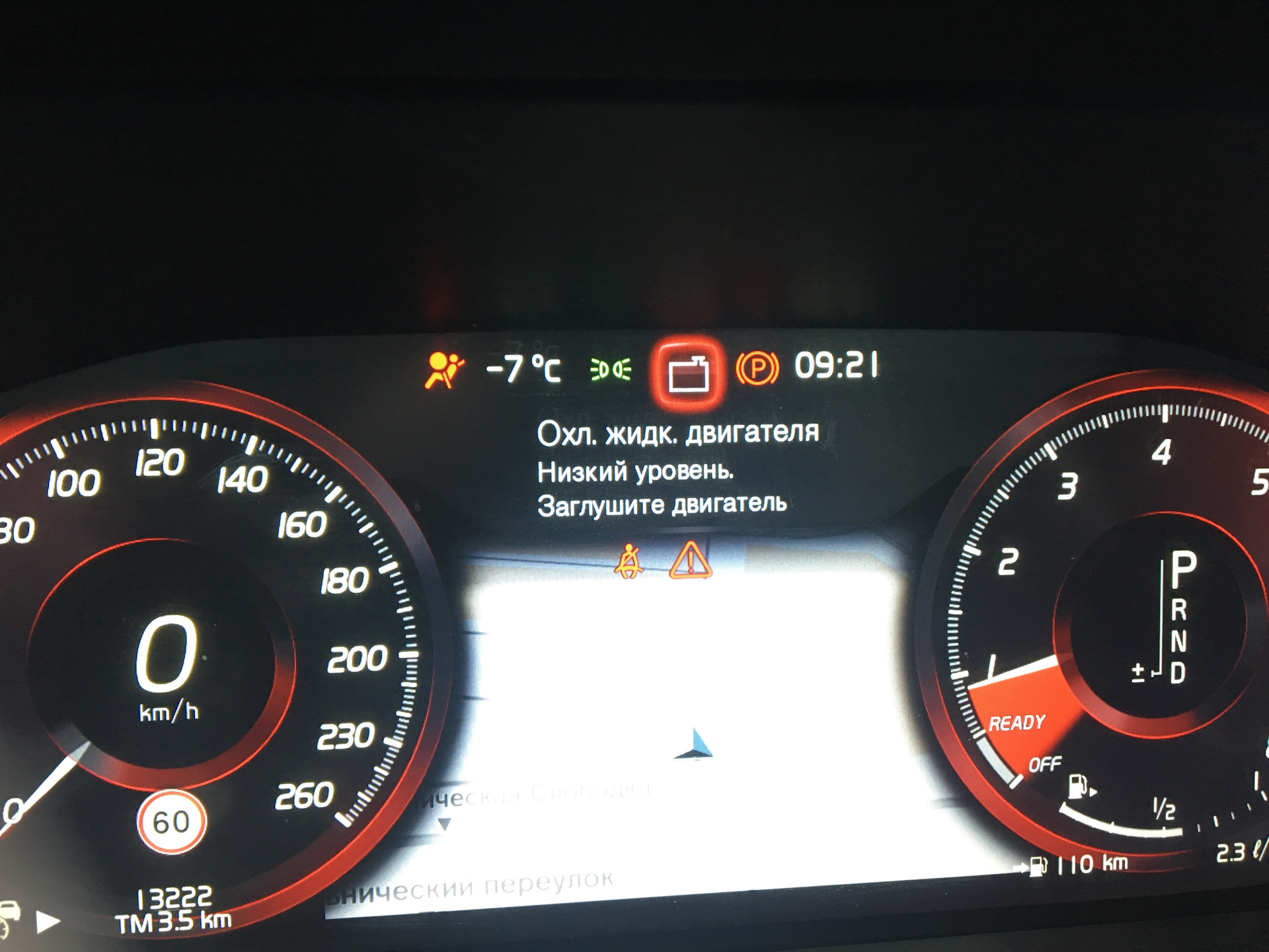 Когда такая ошибка горит, то ни одна из подушек не работает, вообще вся "пафосная" безопасность Volvo, то чем она кичится как самый безопасный авто просто "коту под хвост"… Понять проблему по телефону с сервисом и решить её было не возможно. Сброс на компьютере ошибок, скинуть клемы, все это не помогло. Для себя понял что воскресение будет веселым. И вот мой выходной, воскресное утро, я с семьей еду на на "фотосессию". Сажусь в прогретый, заведенный за ранее автомобиль, благо через Volvo On Call можно это сделать. Но тут я вижу новый бонус, в добавок к прошлому SRS в надежде что машина будет лапочкой и утром все сама починит, но тут "антифриз низкий уровень".