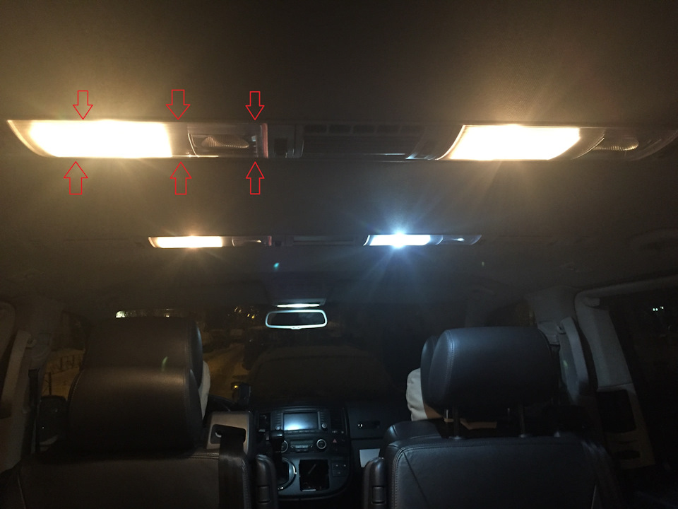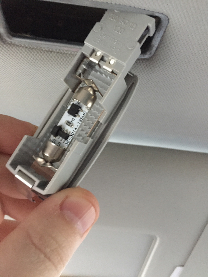 В козырьках размер 36 мм встал, во всех остальных 41 мм. В лампах для чтения стоят Т10