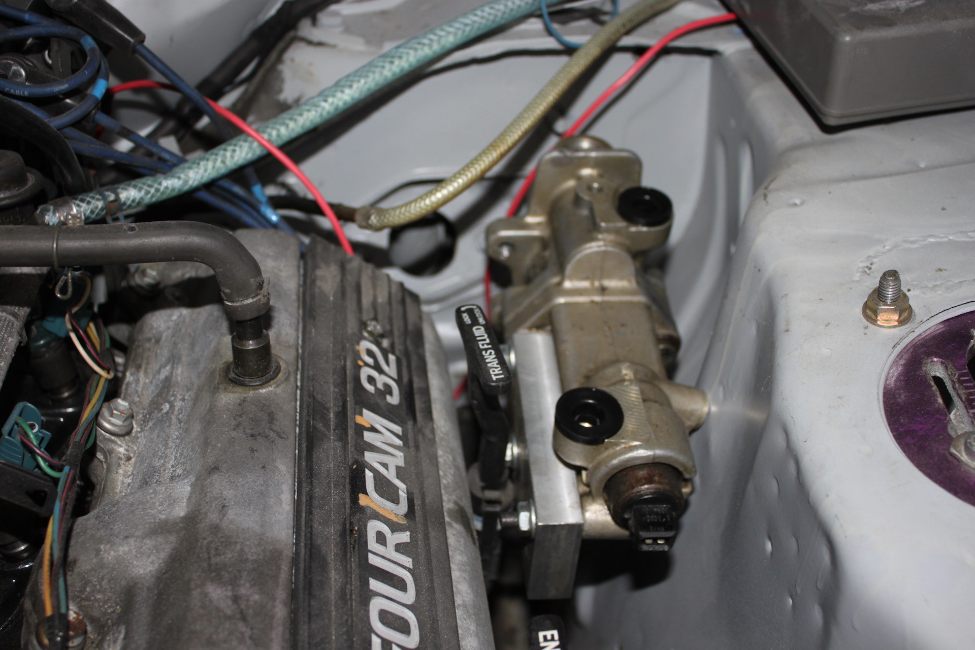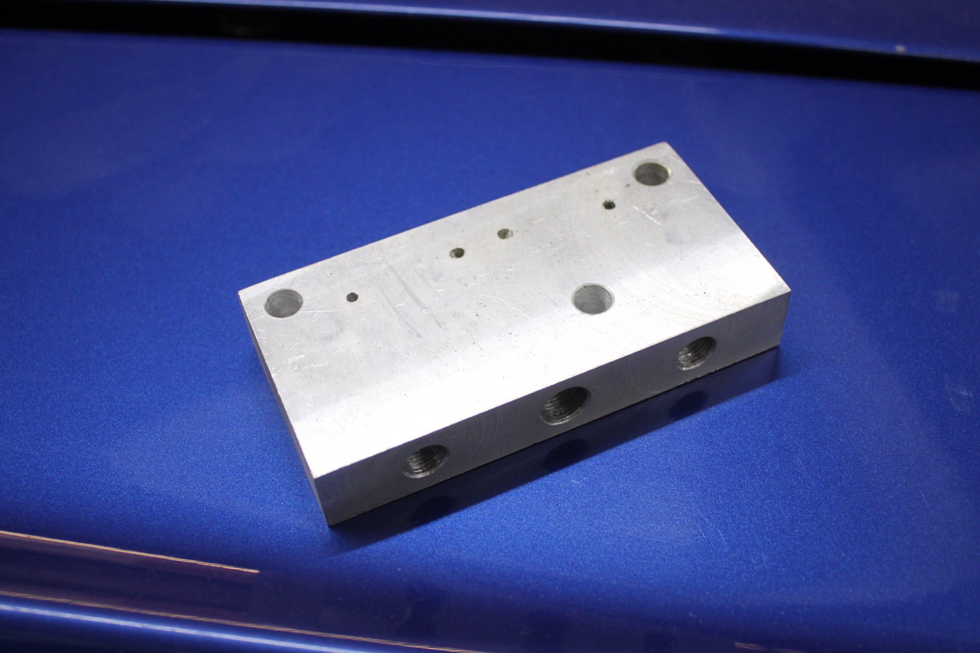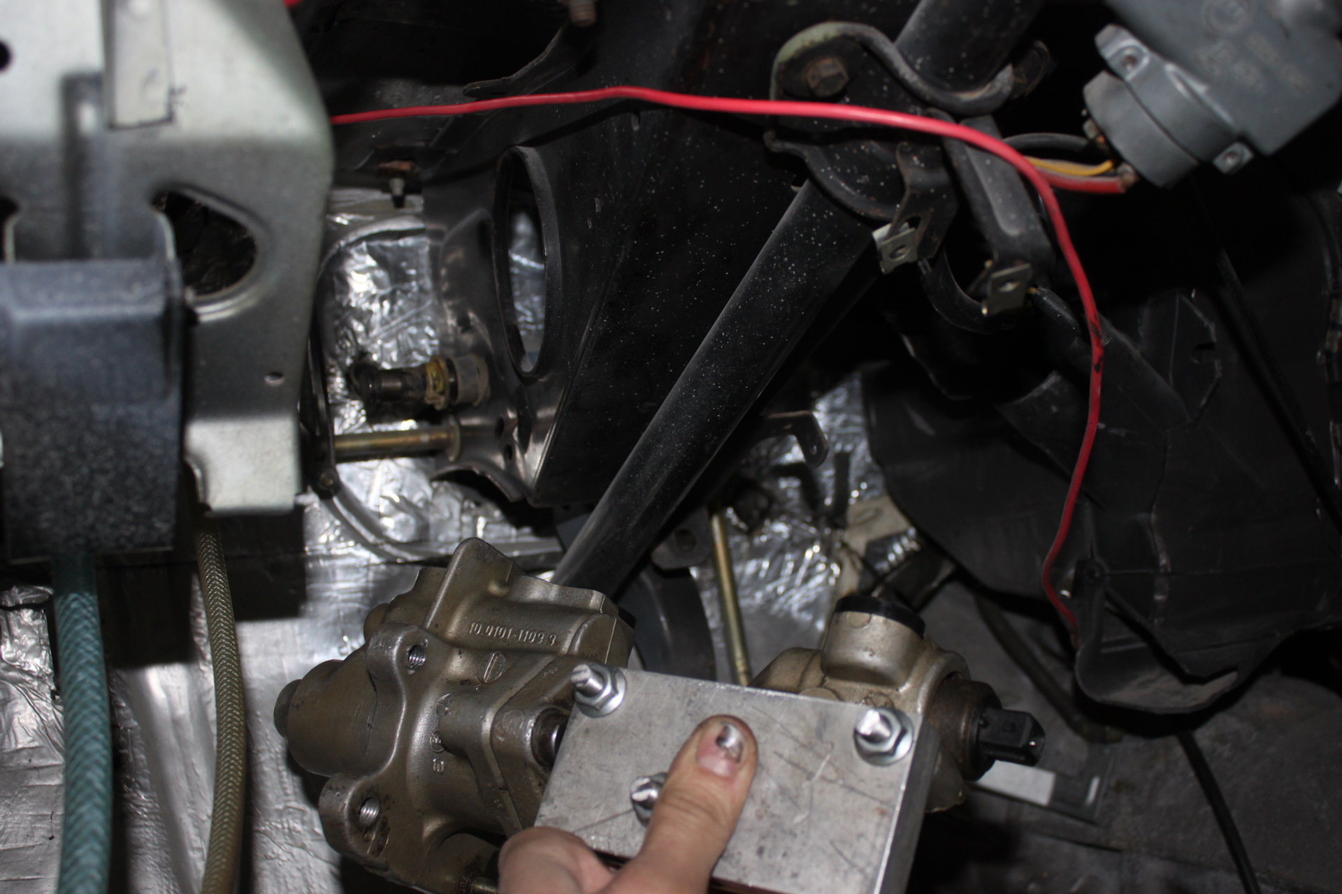 Довольно громоздкий блок клапанов Марк предложил заменить на переходник из алюминиевой пластины.Сам клапанный блок нужен был только для работы ABS а в нашем случае он был просто балластом и от него можно было избавиться. Что я и сделал.