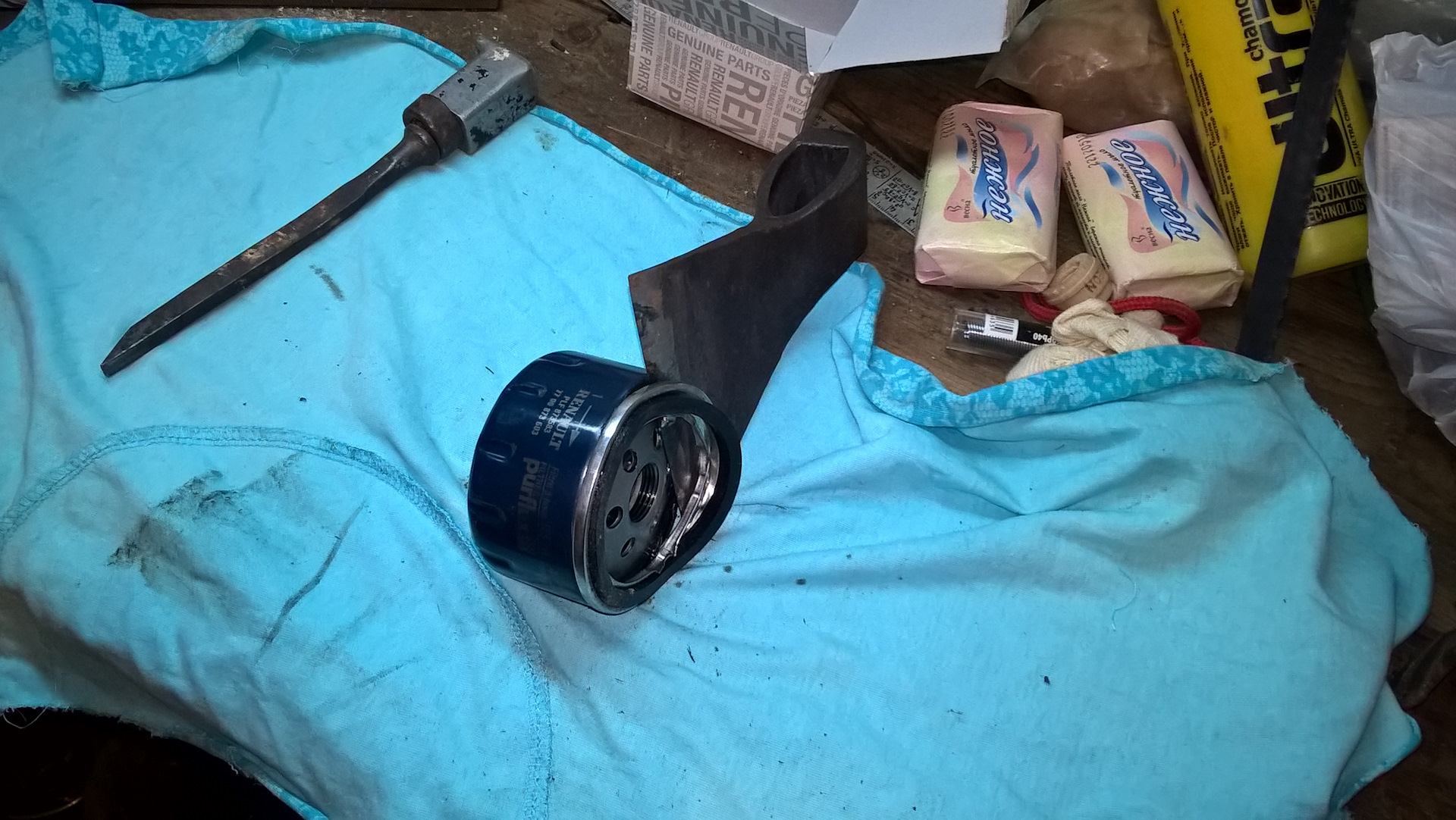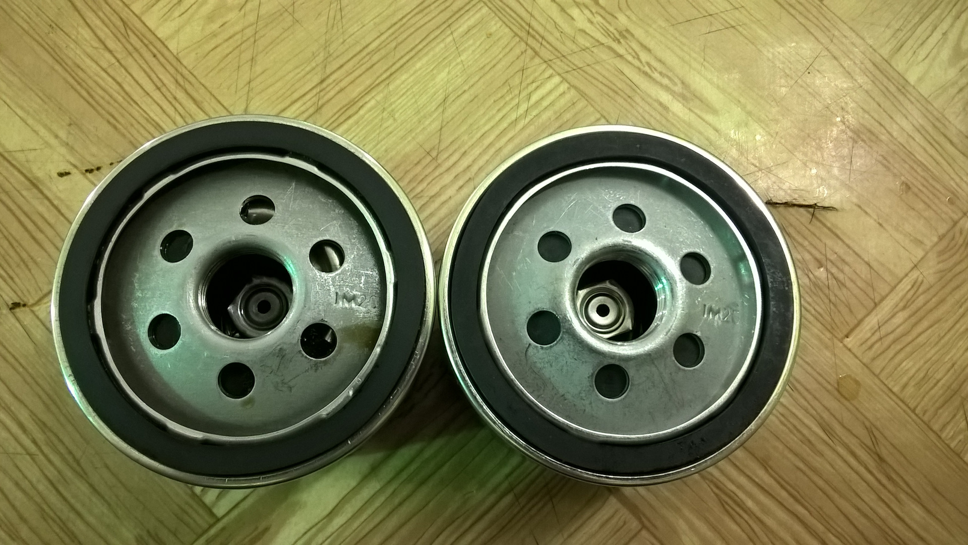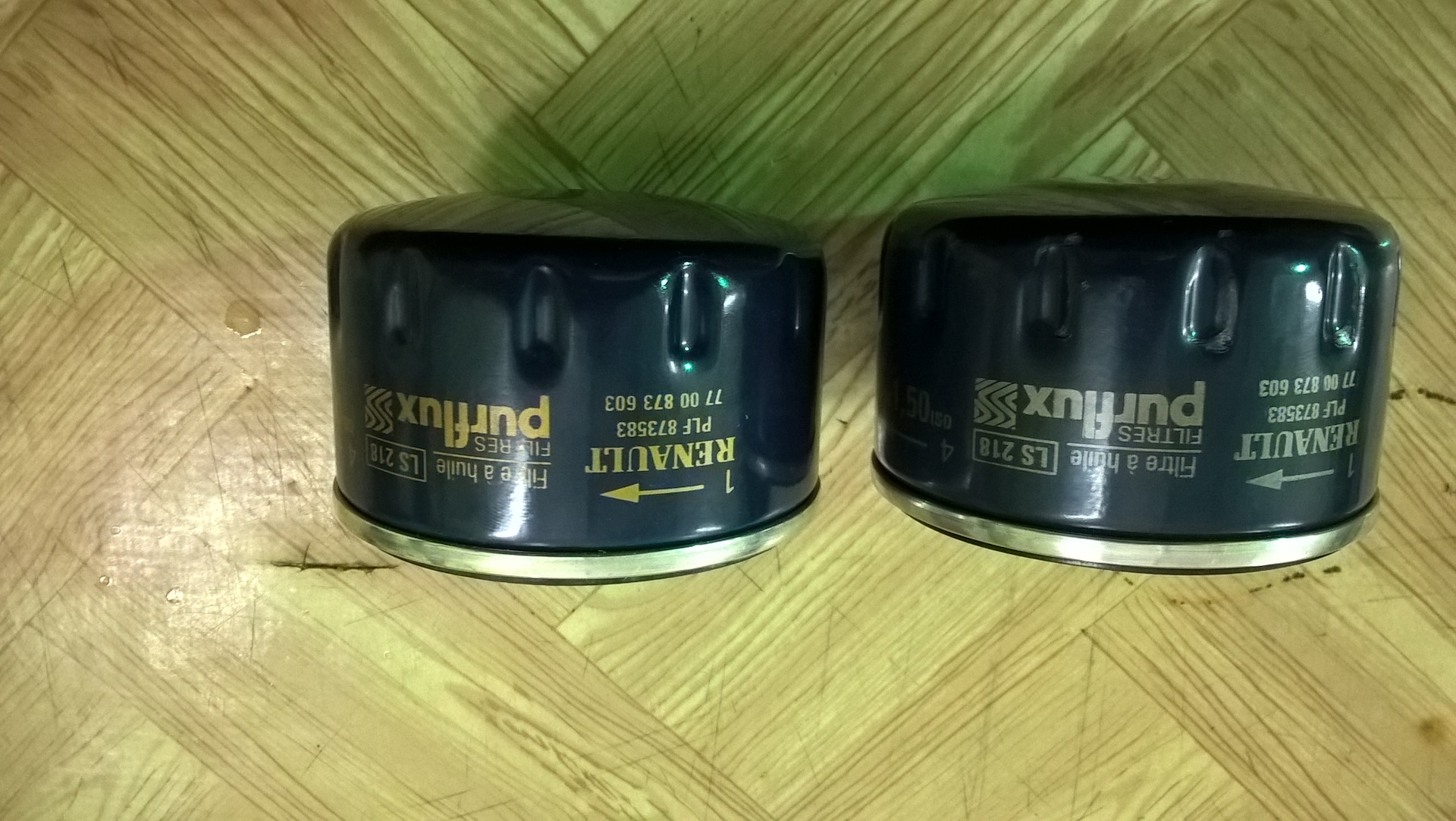 Вроде не долго, но раньше было лучше. Значит как я вижу суть ситуации. В масляном фильтре два клапана, прямой и обратный(прямой мне в этой ситуации не интересен). Если масло долго тухнет после длительной стоянки, то обратный клапан не держит, масло с фильтра и с магистрали от фильтра до маслоприемника сливается в поддон. Если же масло тухнет при первом обороте стартера, то масло идет мимо прямого клапана сразу через бумагу. Поэтому надо поменять масляный фильтр. В этот раз я опять взял оригинал, но не в exist, а в местном рено центре, где ребята научили где надо дунуть, чтобы было чудо проверять клапана в фильтре. А еще показали подделки на оригинальные фильтра, в общем занимательная экскурсия по фильтрам. В общем давайте сравнивать новый и старый фильтра.