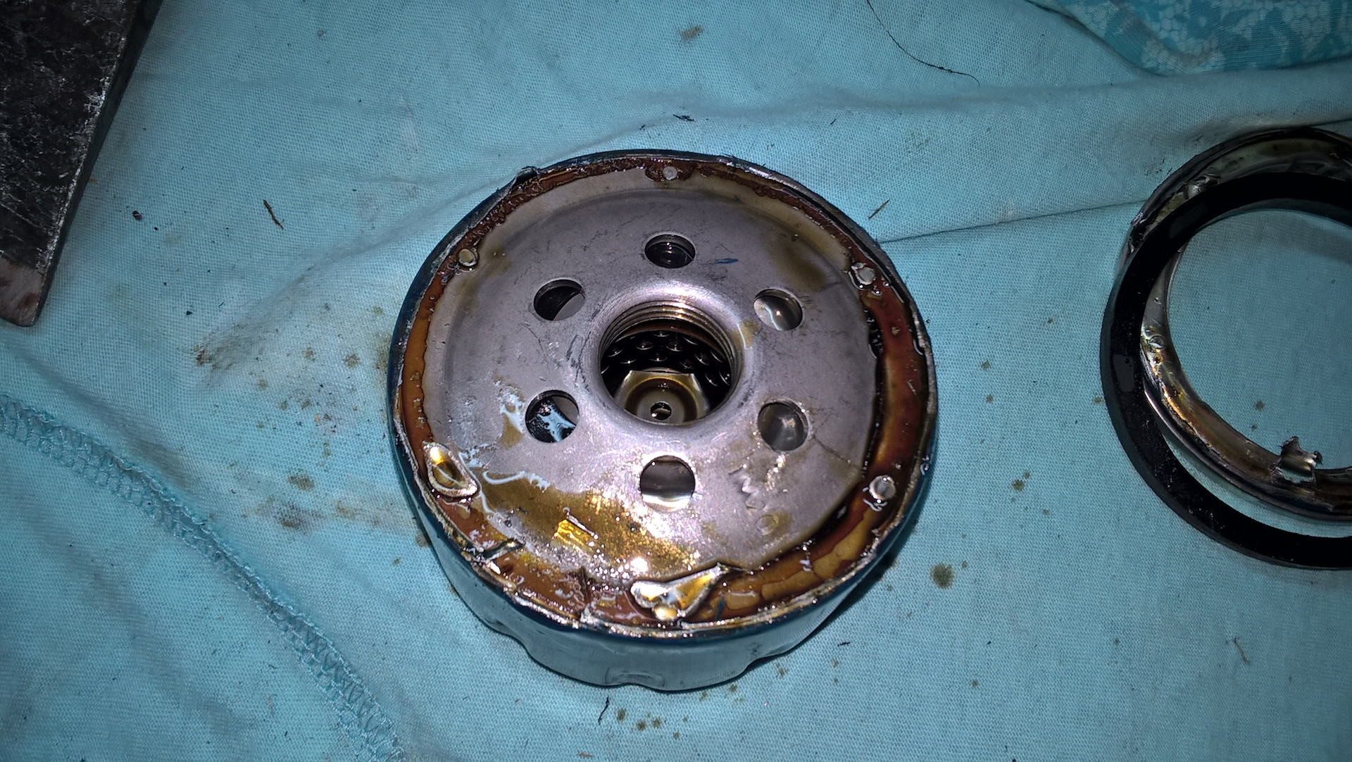 Слева старый. После такого вида я заочковал, прям даже печалиться хотел. На фото видно почему, резинка обратного клапана не целая, на штуцере фильтра я ничего не нашел. Полезли мысли что она гуляет где-то по системе. Грусть, печаль, боль…