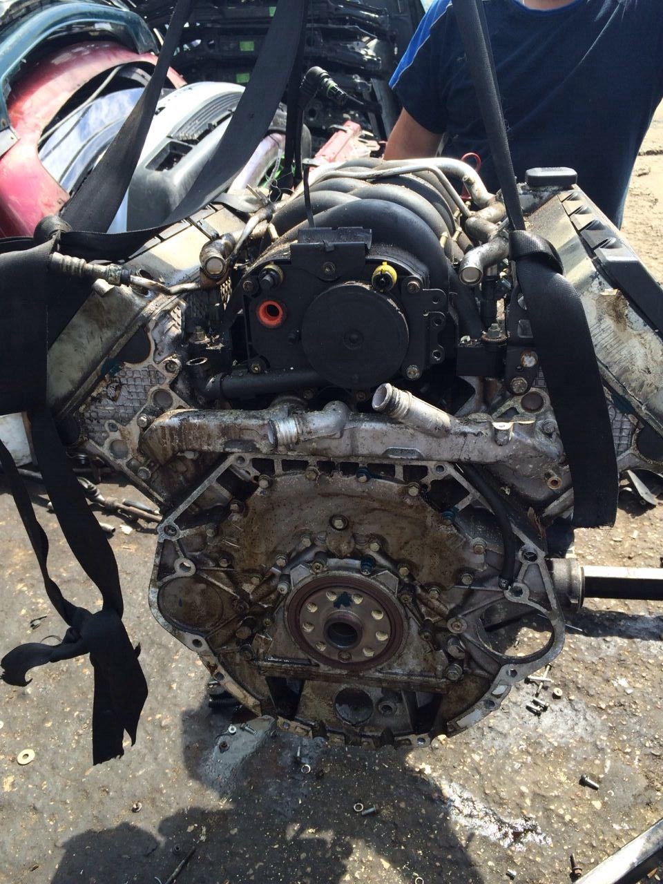 На мой вопрос менеджеру почему он такой грязный? Он ответил, что в отличии от большинства контор они не намывают двигателя, чтобы было видно где и какие прокладки требуют замены. Ещё раз посмотрев фотки я подумал, что там по мелочи: прокладки под клапанные крышки и задний сальник к.вала. И в принципе успокоился.