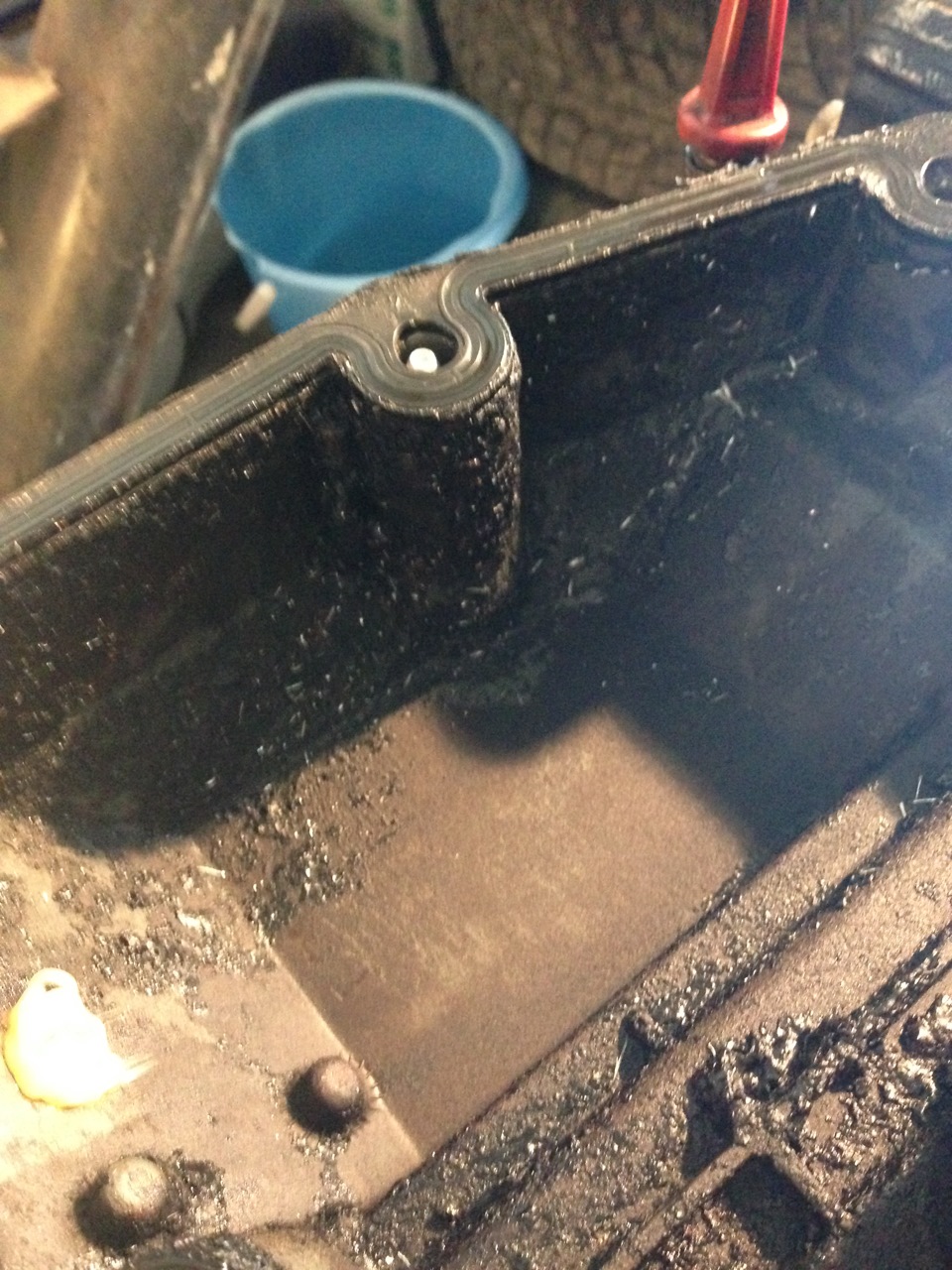 Отправив фото менеджеру, в ответ услышал: "ну поставьте со своего". Ладно смирился с этим, подумав ну не отправлять же назад двигатель из-за крышки? Отвёз машину в пятницу вечером на станцию и слегка обмыл это дело)) С утра звонок со станции: "Женя приезжай, это не описать словами". Я вызвонил друга и двинулся на станцию. Вот что меня ждало: