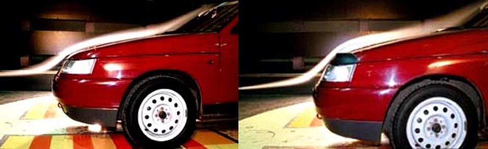 VAZ 2110 — снижение коэффициента аэродинамического сопротивления на 0,005 (1,5%) и аэродинамической подъемной силы на передней оси на 7%, на задней — на 41,5%.