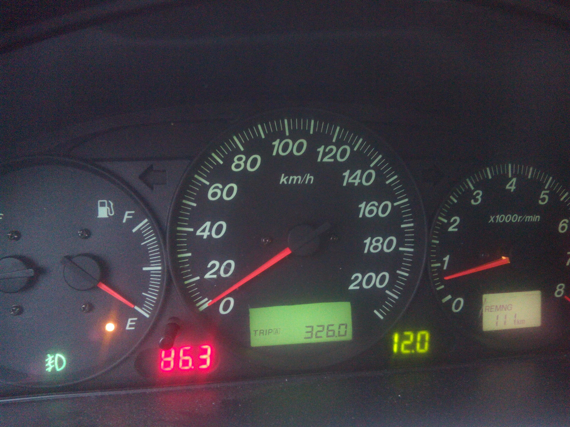 на 326 км стрелка падает ровно в ноль, а реминг поднимается на 111км, езжу дальше, стрелка уже в минус уходит…пробег 362 км, а реминг остаток- на 113 км!