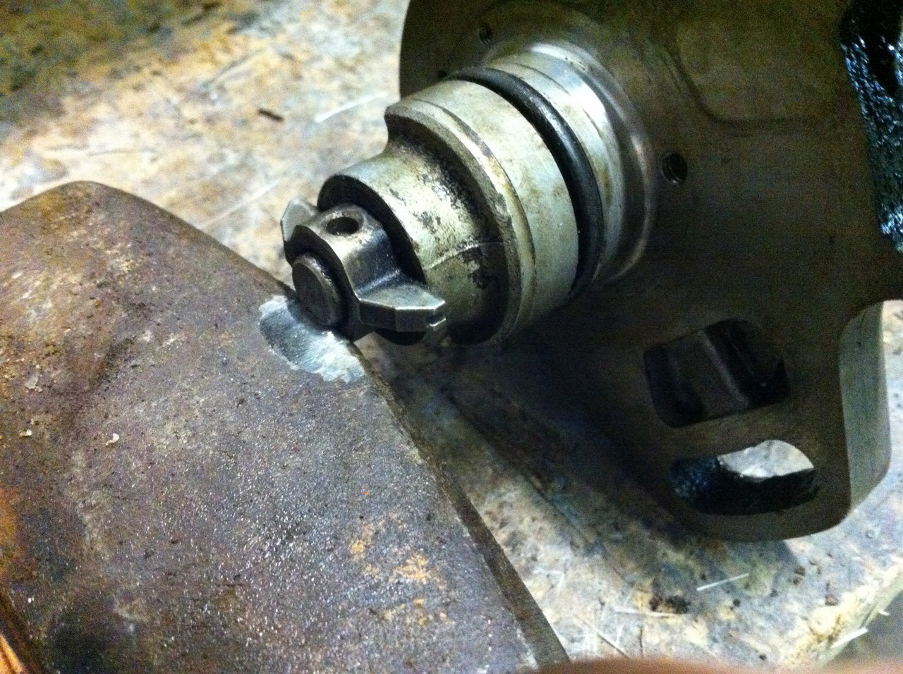 Шлифонул штифт, что бы не так тяжело входил в вал, и заколотил его обратно, попутно отмывая все запчасти)))