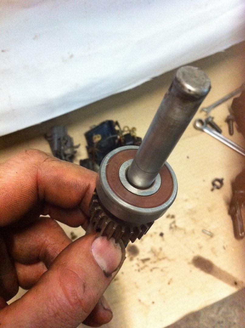 Вал немного шлифонул от нагара и кокса, смазал, что бы легче снялся старый подшипник. У него уже был небольшой люфт, и затолкал новый. Новый надо ставить на то же место, по возможности))