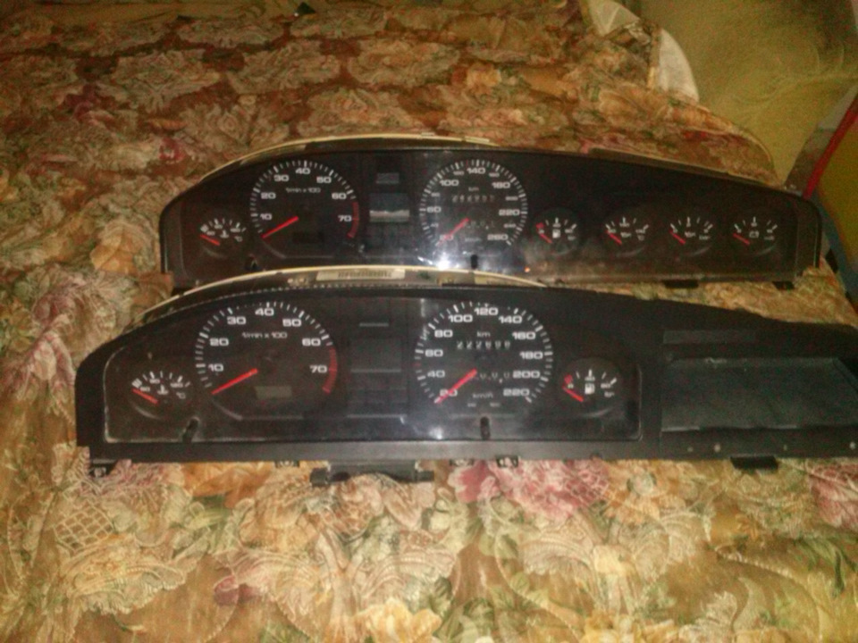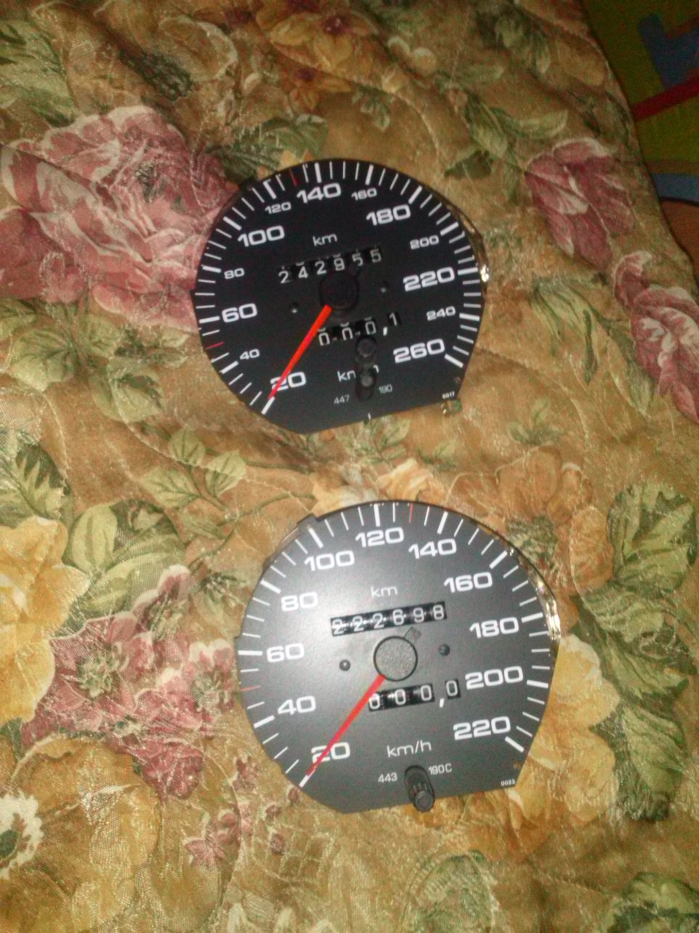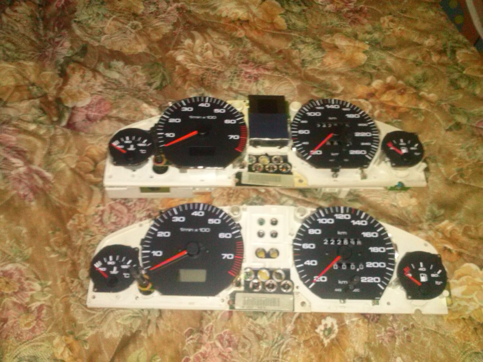 Всем доброго времени суток. У меня стояла простая приборка, поставил полную приборку с донора. Ну и обычная проблема не работает одометр. Да и экран часов и БК потекшие были, я еще на доноре снял экран с БК и закрыл его черной бумагой чтоб глаза не бесил, ну и часы со своей приборки переставил. На доноре спидометр 260, ну а мой 220. Решено переставить спидометр. Ну вот обе