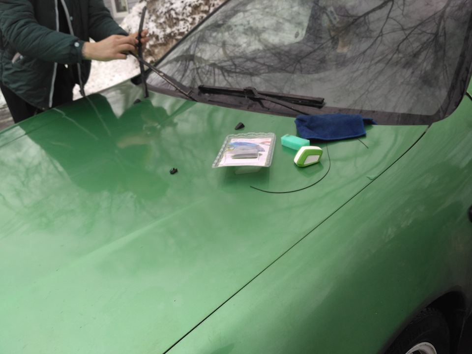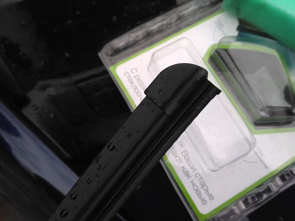 На следующий день после покупки, пошёл к машине, всё как по инструкции: снял щётку для удобства (можно и не снимать), промыл её, просушил тряпкой потом губкой что в комплекте была, вставил в паз №1 и вжжжжж, в руках тоненькая полосочка резины осталась.