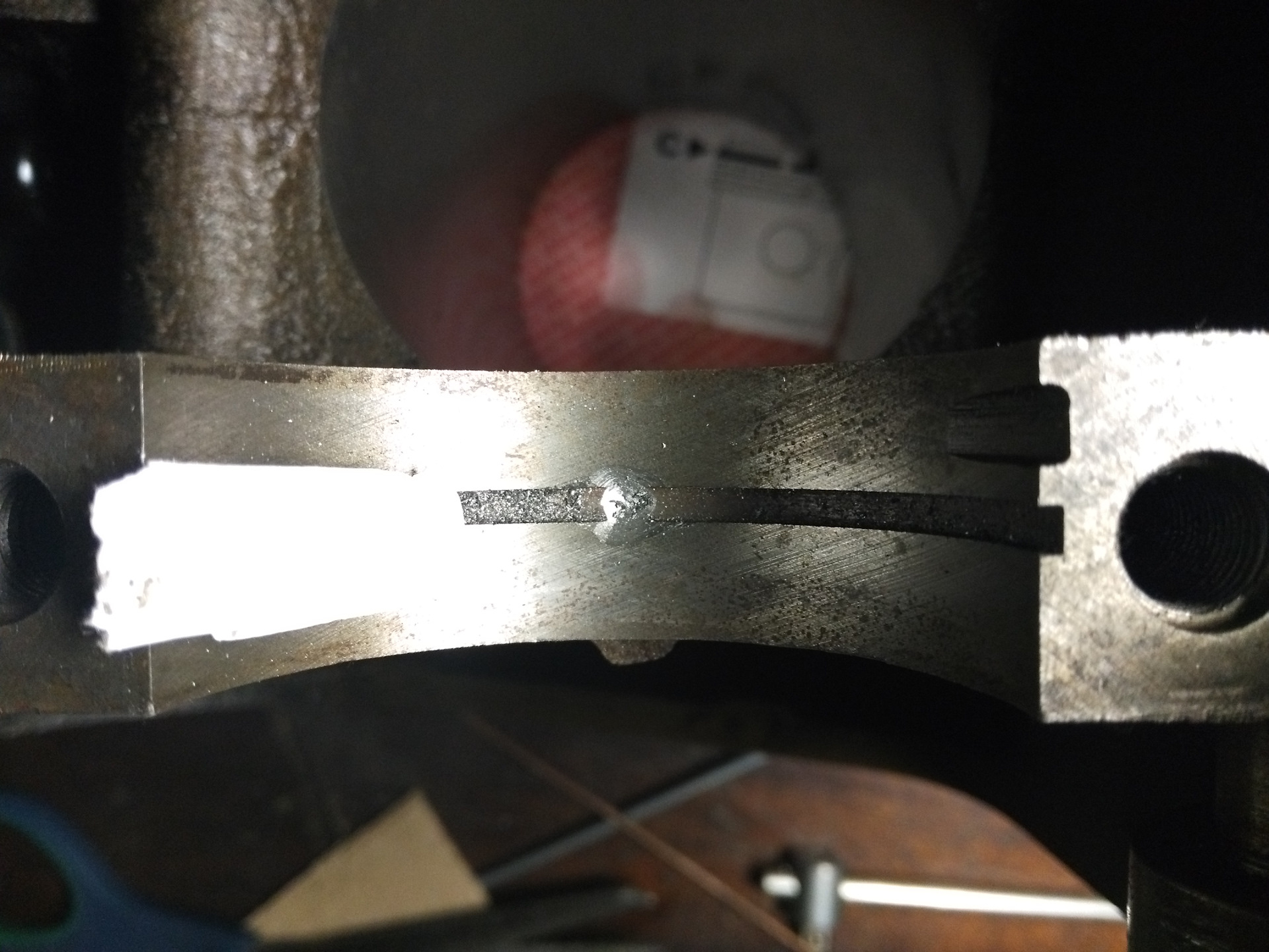 А раньше на шатуне был канал, направленный от вкладыша на поршень