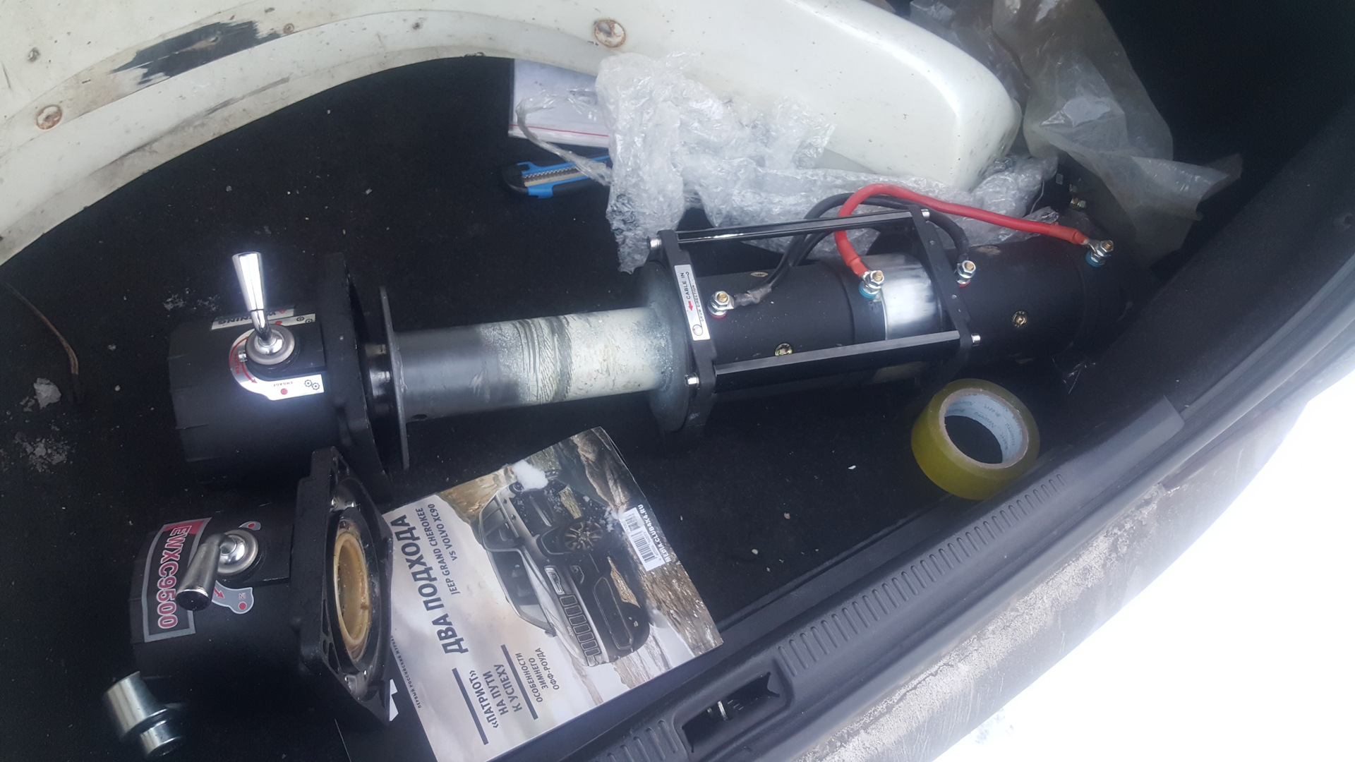 в коробке был трос ролики под трос . два мотора и два редуктора, один запасной общий вес 60кг