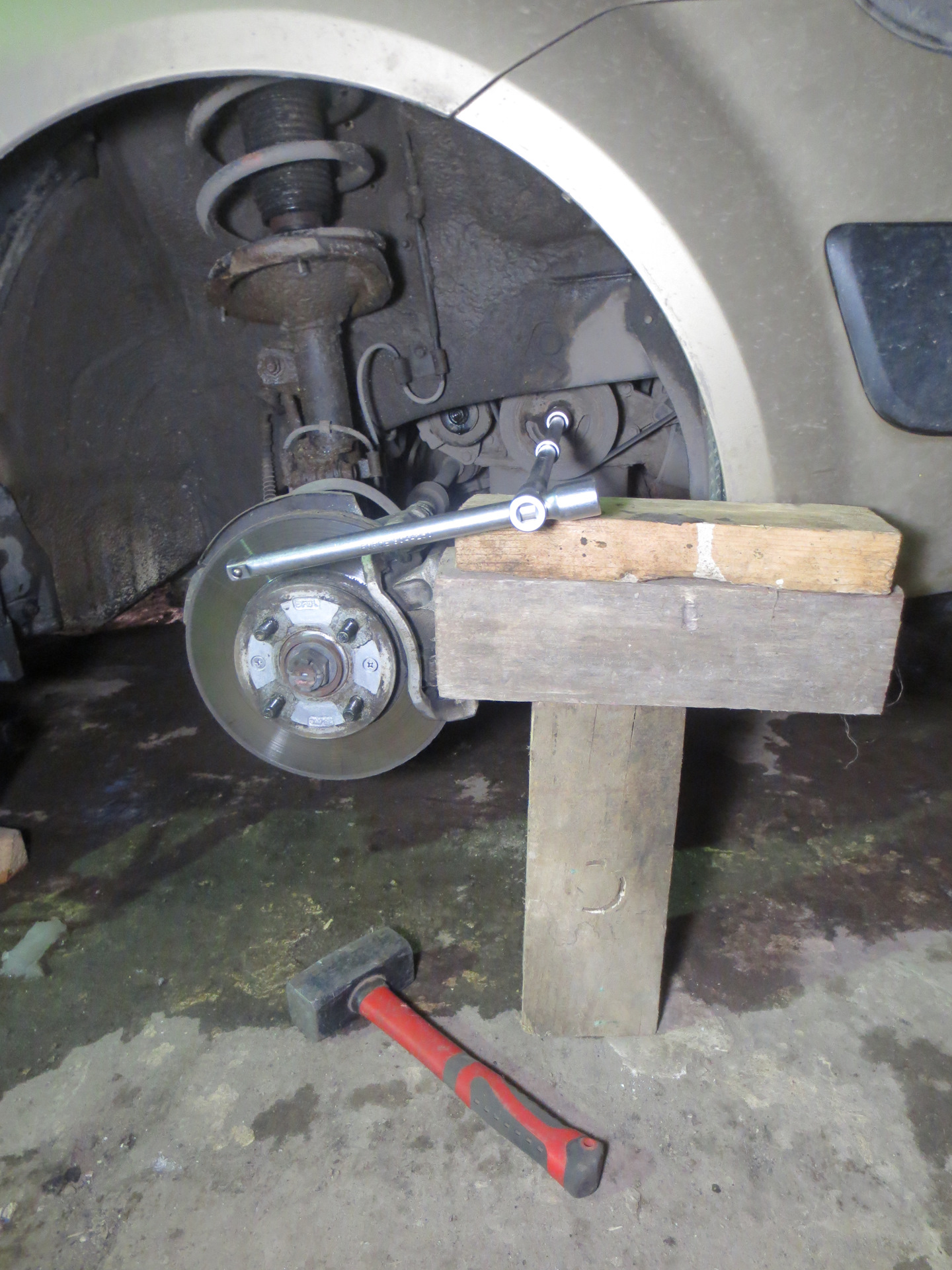 И что бы думаете? С третьего удара болт открутился. А с третьего потому что боялся сильно бить. Оказывается удар должен быть сильным и резким. Для этого я взял маленькую кувалдочку ))). (Что у Русского человека делается без кувалды или молотка ? Да не чего, они везде пригодятся.))))