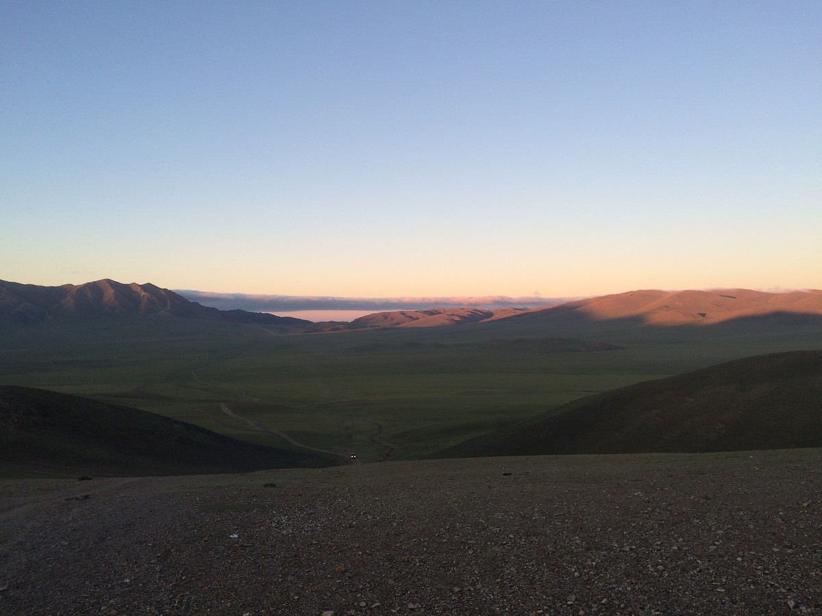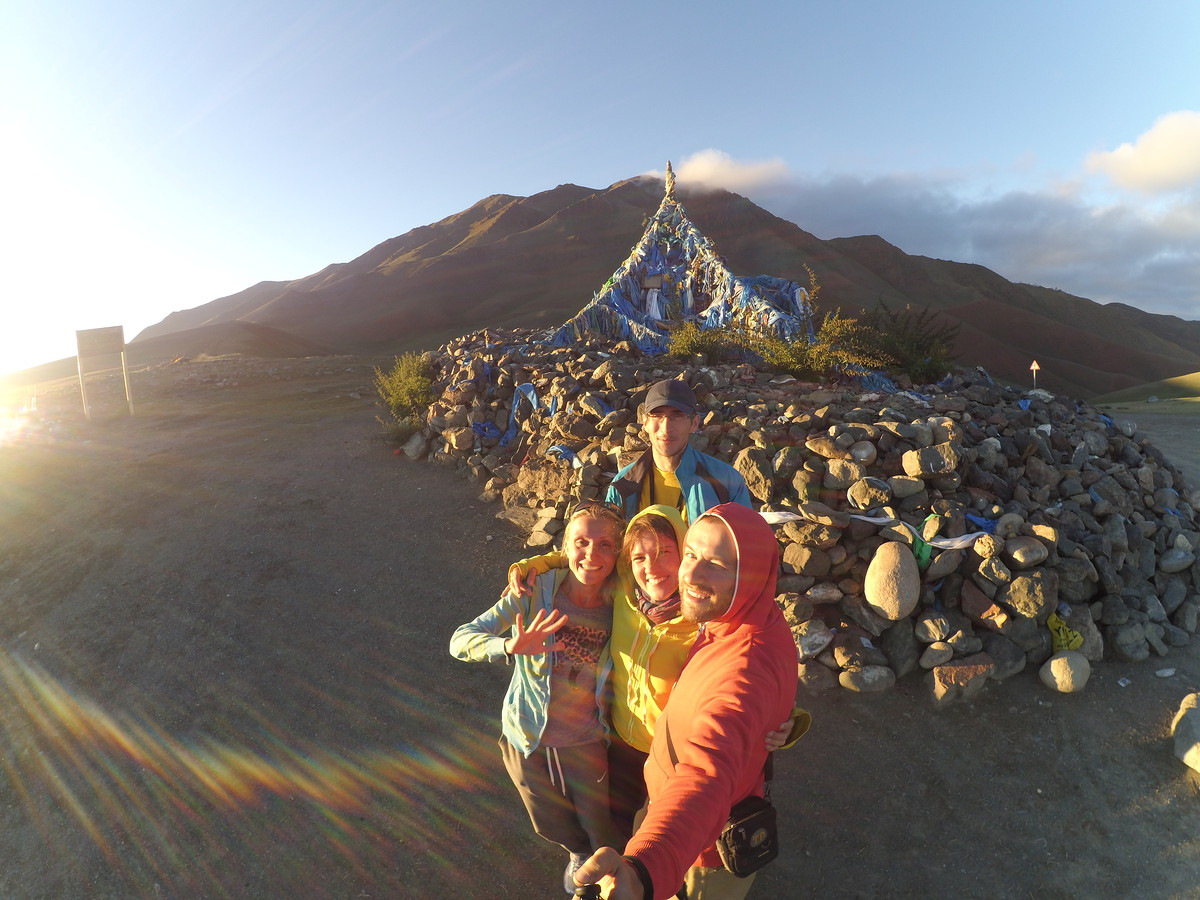 Забравшись на перевал мы принялись наслаждаться видом. Особо понаслаждаться не удалось, так как дул аццки холодный ветер и приближался закат, а нам предстояло еще доехать до озера Уурег Нуур.