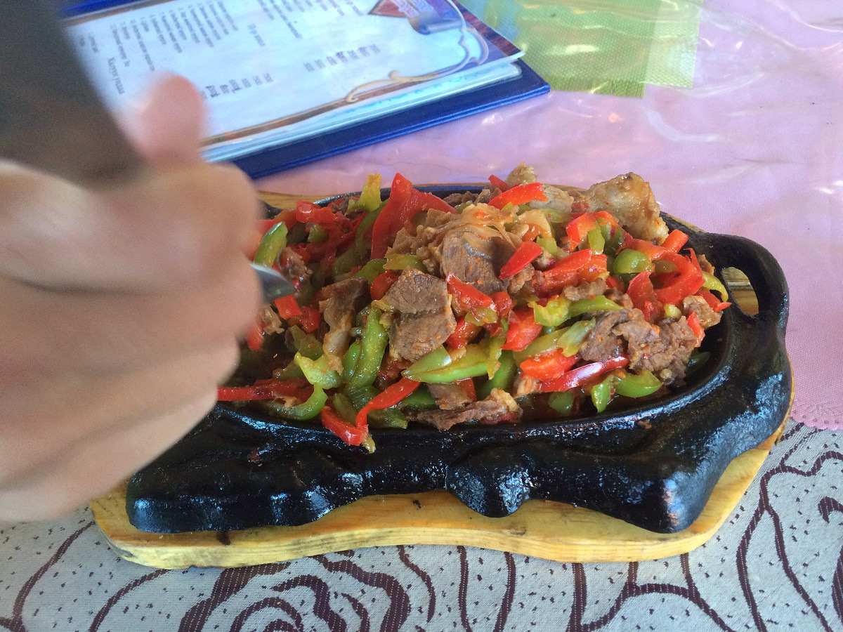 Пообедать мы заскочили в местную кафешку и заказали хургу. Я взял с болгарским перцем, Ира с Ваней взяли с кимчи капустой, а Ю с древесными грибами. Моё блюдо оказалось самое вкусное.