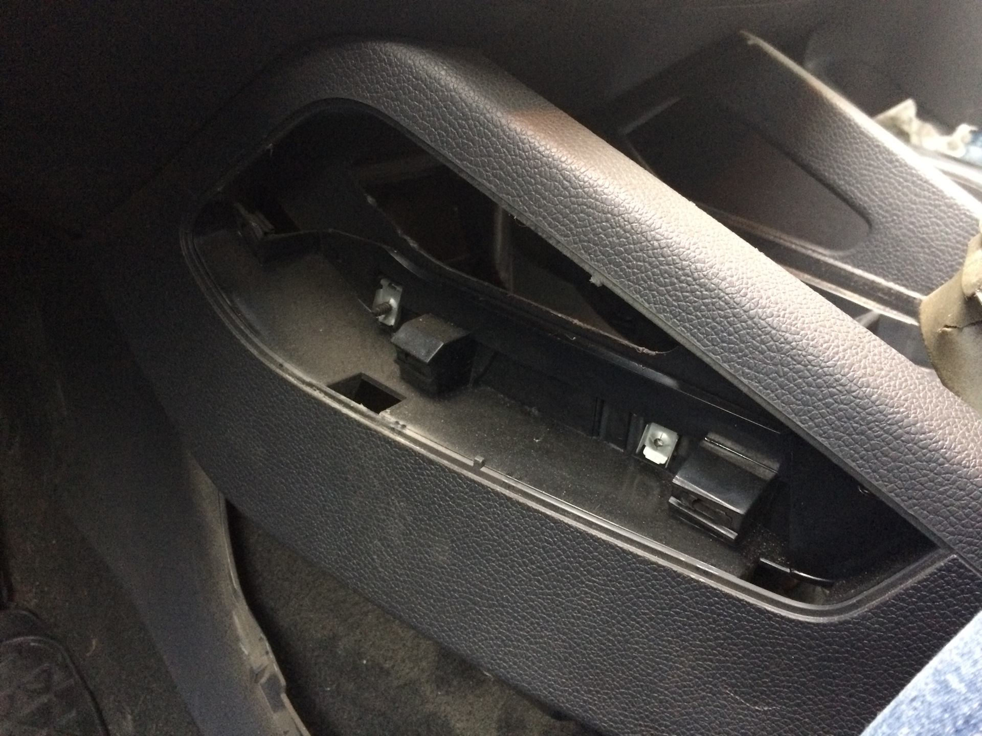 Я долго искал "как и где" уже думал снова разбирать пластик приборки как на 6м гольфе, но всё оказалось проще). Центральный тоннель крепится к приборной панели двумя саморезами которые находятся внутри боковых "ручек". Для того чтобы к ним попасть нужно вытащить внутреннюю рамку: