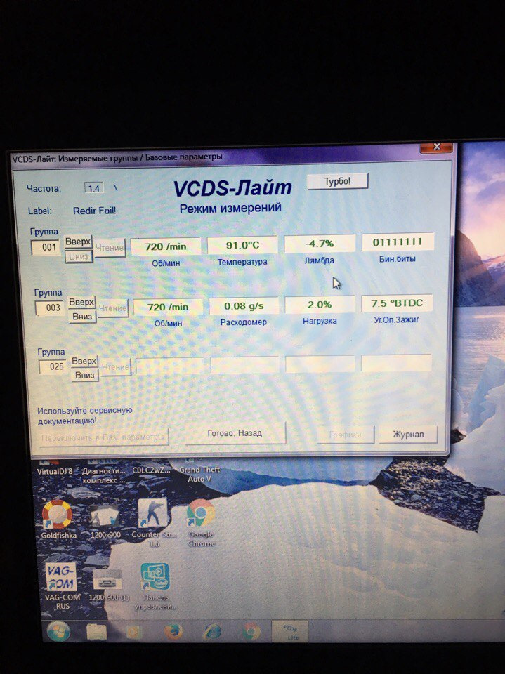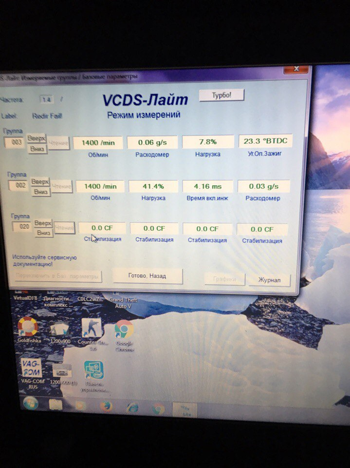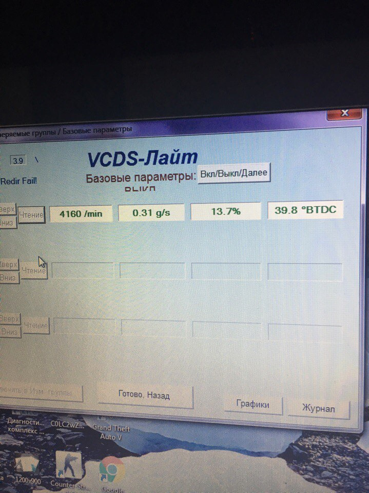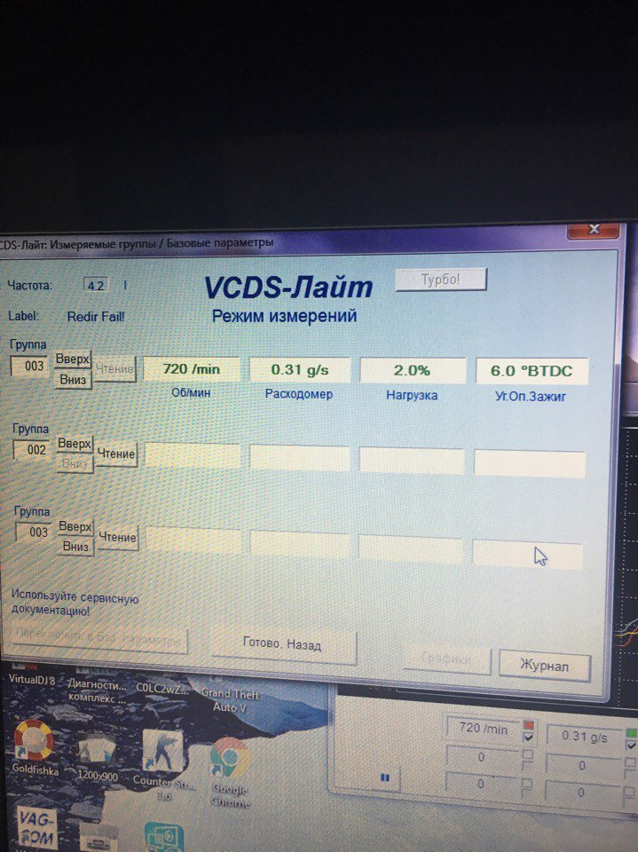 ниже загружу фотки с показаниями васи, я так понимаю умер ДМРВ и кто знает какие показания должны быть ДМРВ, потому, что на холостых оно писало 0.03g/s и под нагрузкой (при езде до отсечки) такие же показания