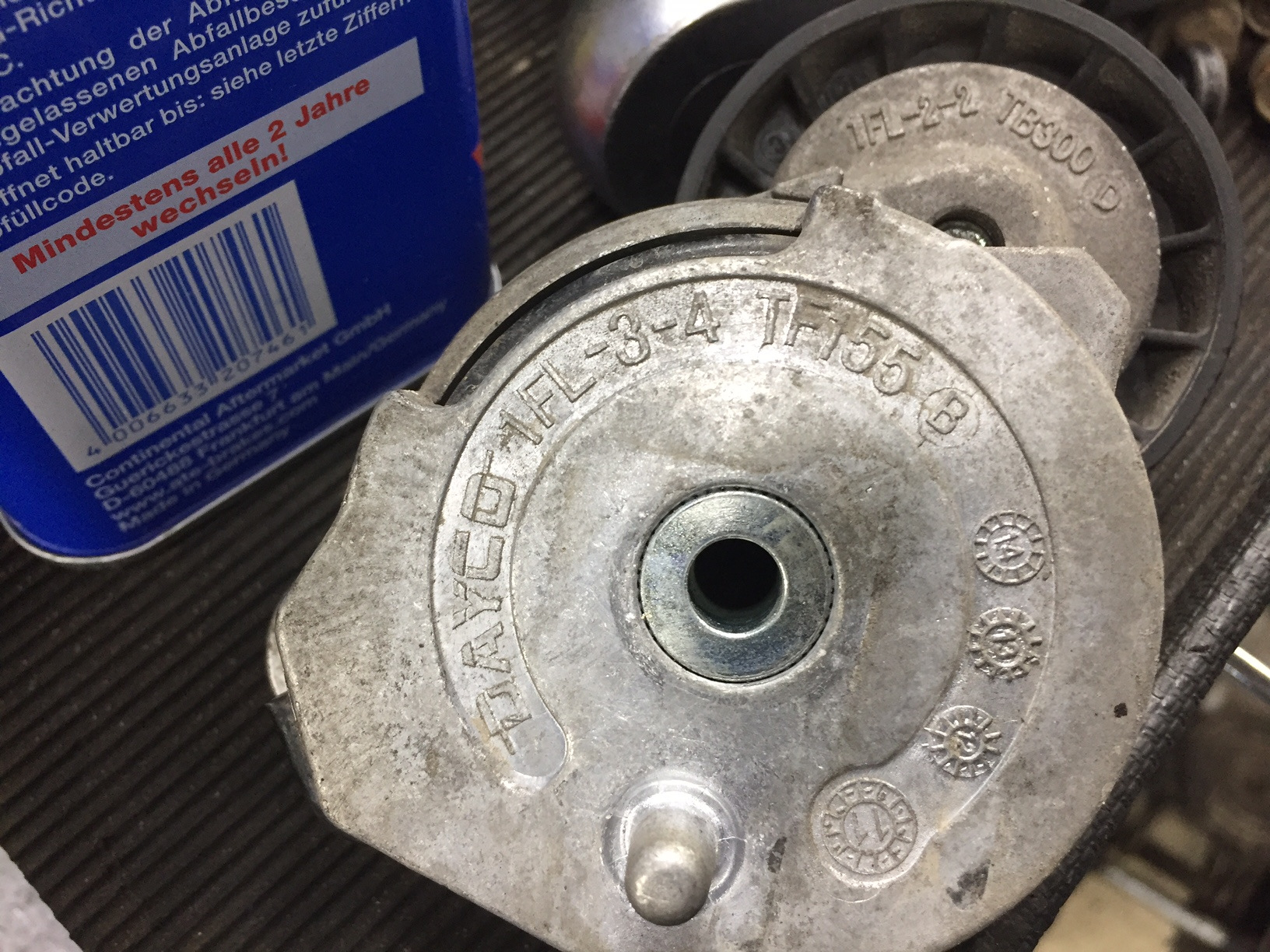 Натяжной ролик генератора, который DAYCO, действительно в рабочем состоянии, хотя следы того что пружина внутири него все же двигается и работает присутсвуют)) Там немного износился сам пластиковый ролик, который уверен что можно заменить отдельно. Я все в сервисе оставил, а можно было тоже на пиво, как минимум, поменять)))