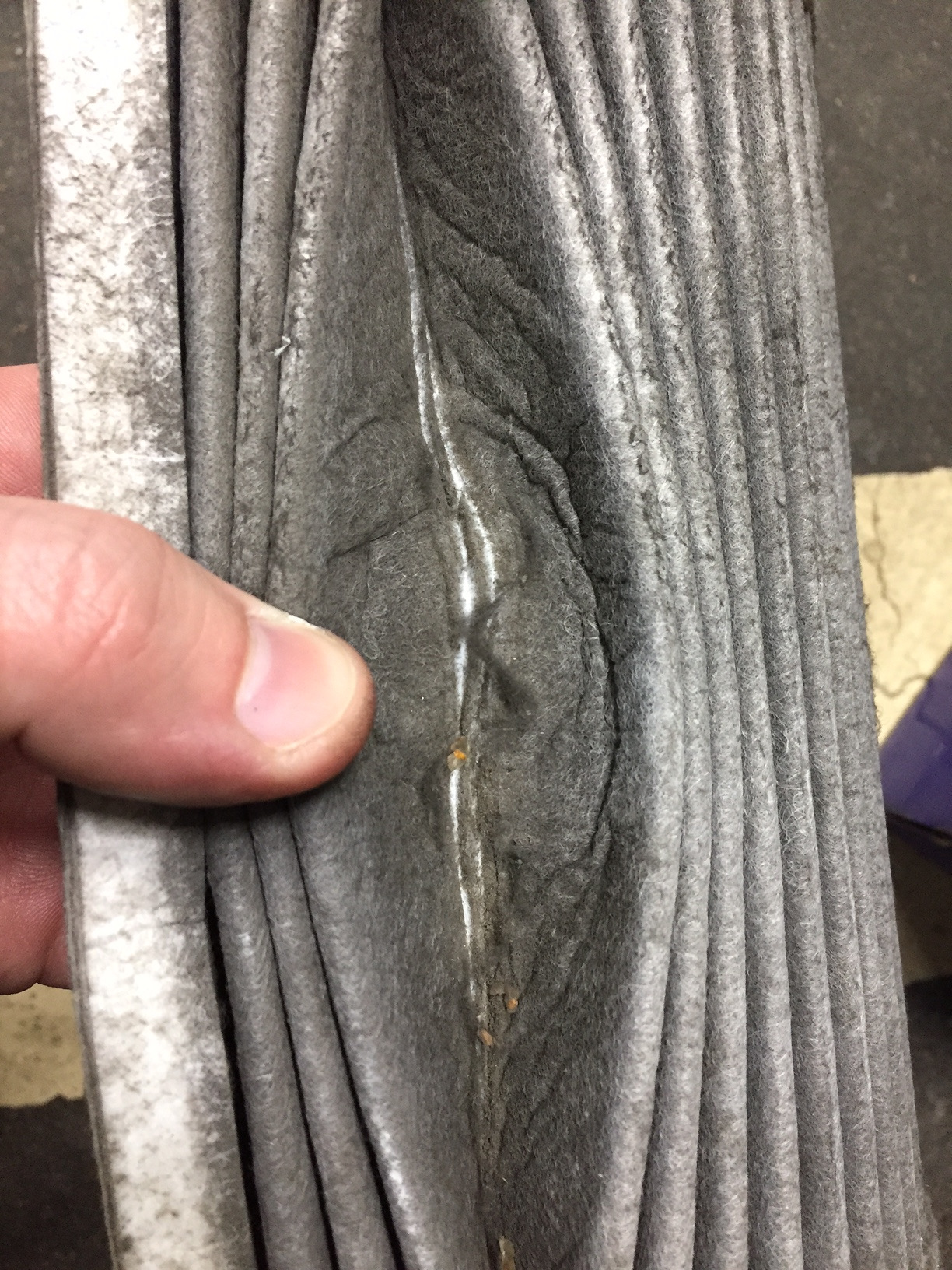 С трещиной ремень генератора. Прожил соответственно он 47 тык.