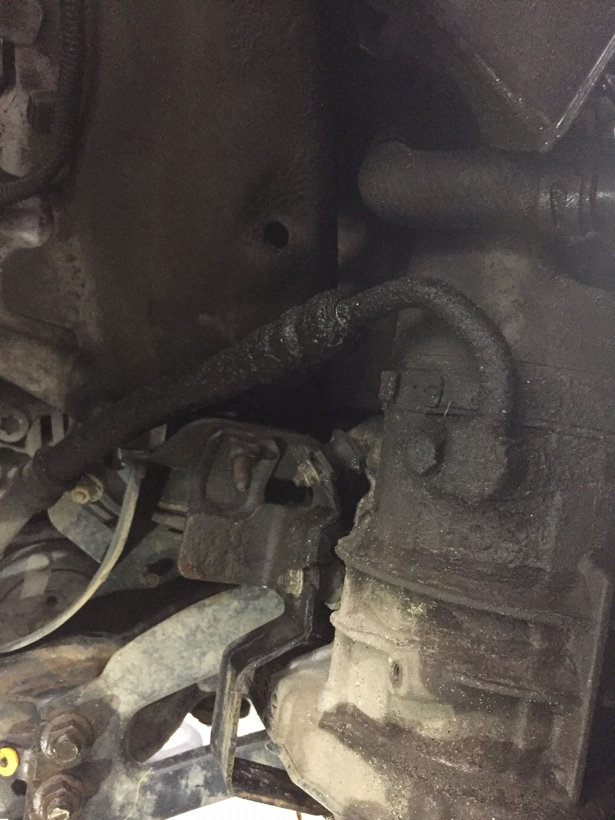6. Течь масла из трубки ГУР по месту завальцовки. С вердиктом тут без вариантов — замена. И откладывать замену не стоит учитывая давление в ней и возможные последствия.