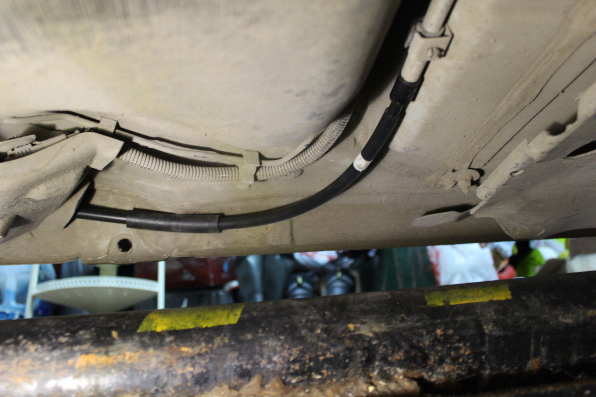 — разблокируем фиксаторы тросов (которые в районе колес) и выводим их в строну, чтобы они случайно не защелкнулись (фиксаторы расположены в районе передней части арок, снаружи доступ удобнее, чем из ямы);