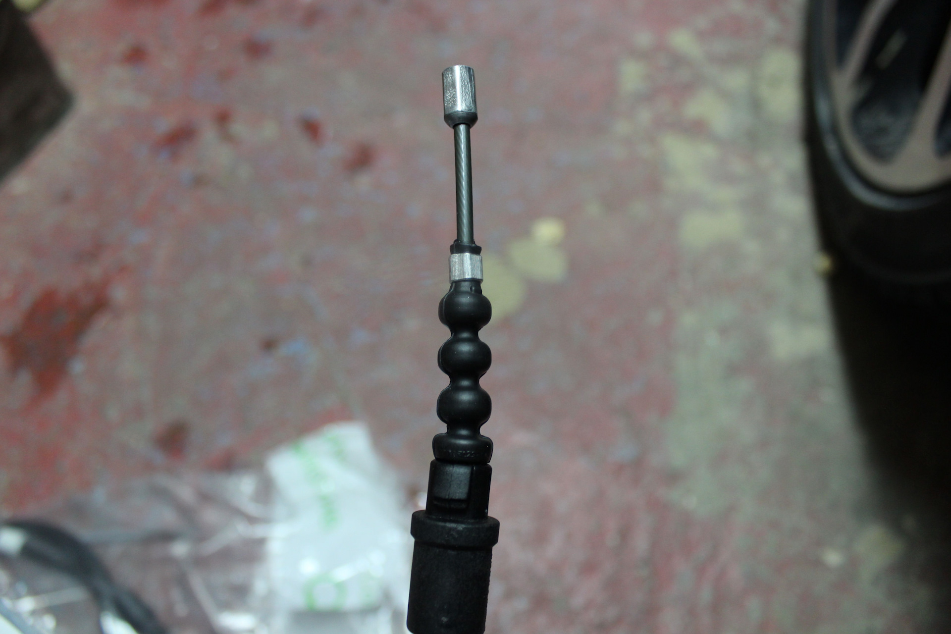 — отсоединяем конец троса со стороны суппорта и освобождаем его (приходится орудовать отверткой, т.к. сам он не вывалится);