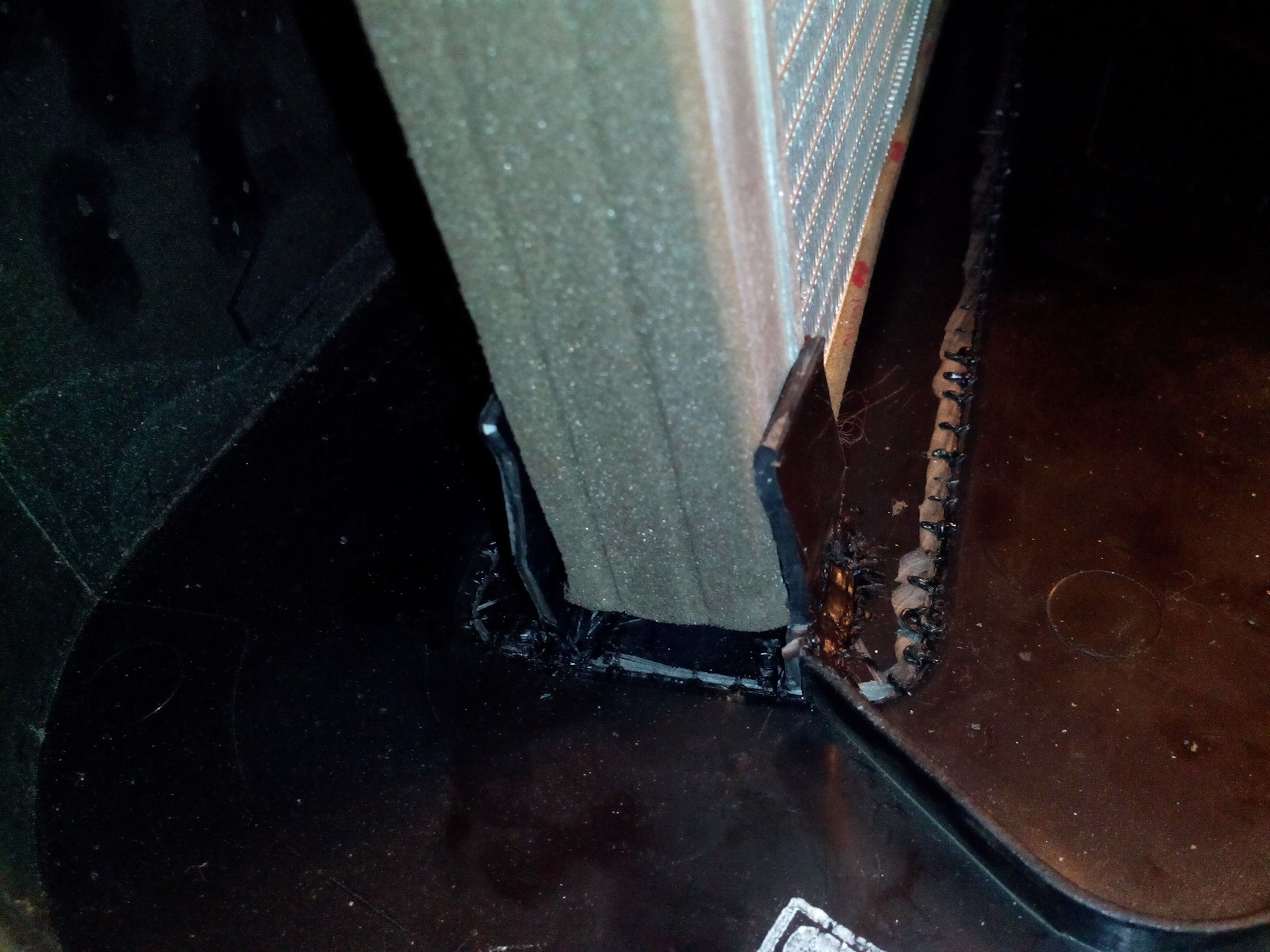 Коряво вставлял)). Паралоном плотным обклеил где не хватало, дырыим же заткнул и вставил… (понимаю что это пи*дец но под руками больше не было ничего) потом смотрел были некоторые щели которые устранял, после этого лучше стало но всё равно не то, особенно если скорость побольше включить, параллон воздухом вроде почти не продувало по ощущениям когда руку засовывал сверху в центральных воздуховод, так что маловероятно что дело в нём, просто как мне кажется за счёт того что сам радиатор тоньше и соты пореже воздух просто не успевает прогреваться так хорошо как на родном. Мне бы его хватило конечно, но супруга в -25 мне весь мозг съела (ибо только в колготках на работу и ездит…), так что пришлось возвращать как и было.