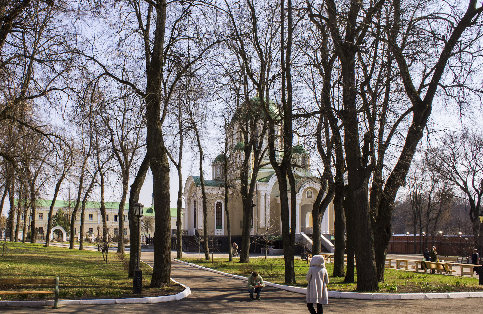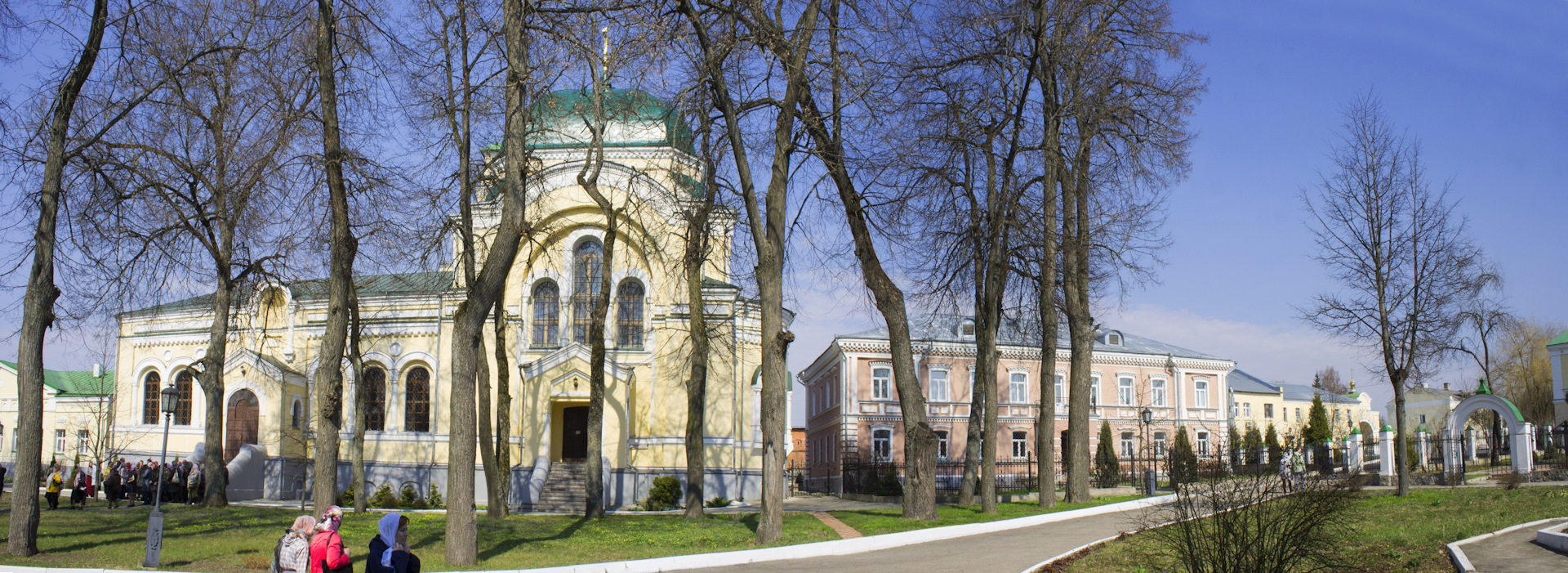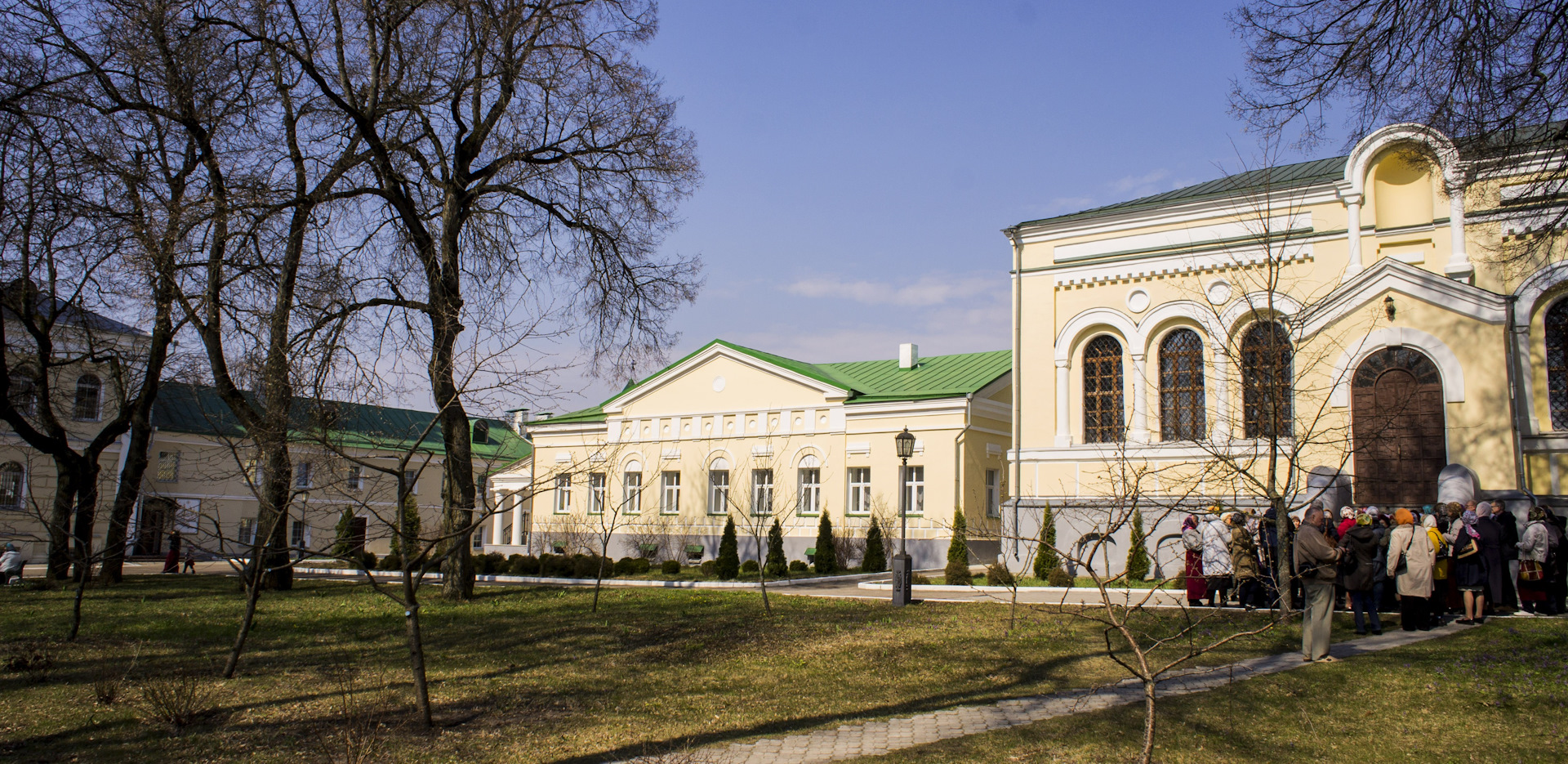 Невероятно контрастным на фоне этой церкви выглядит один из самых известных монастырей Калужской области — мужской монастырь Успения Пресвятой Богородицы, Калужская Свято-Тихонова Пустынь.