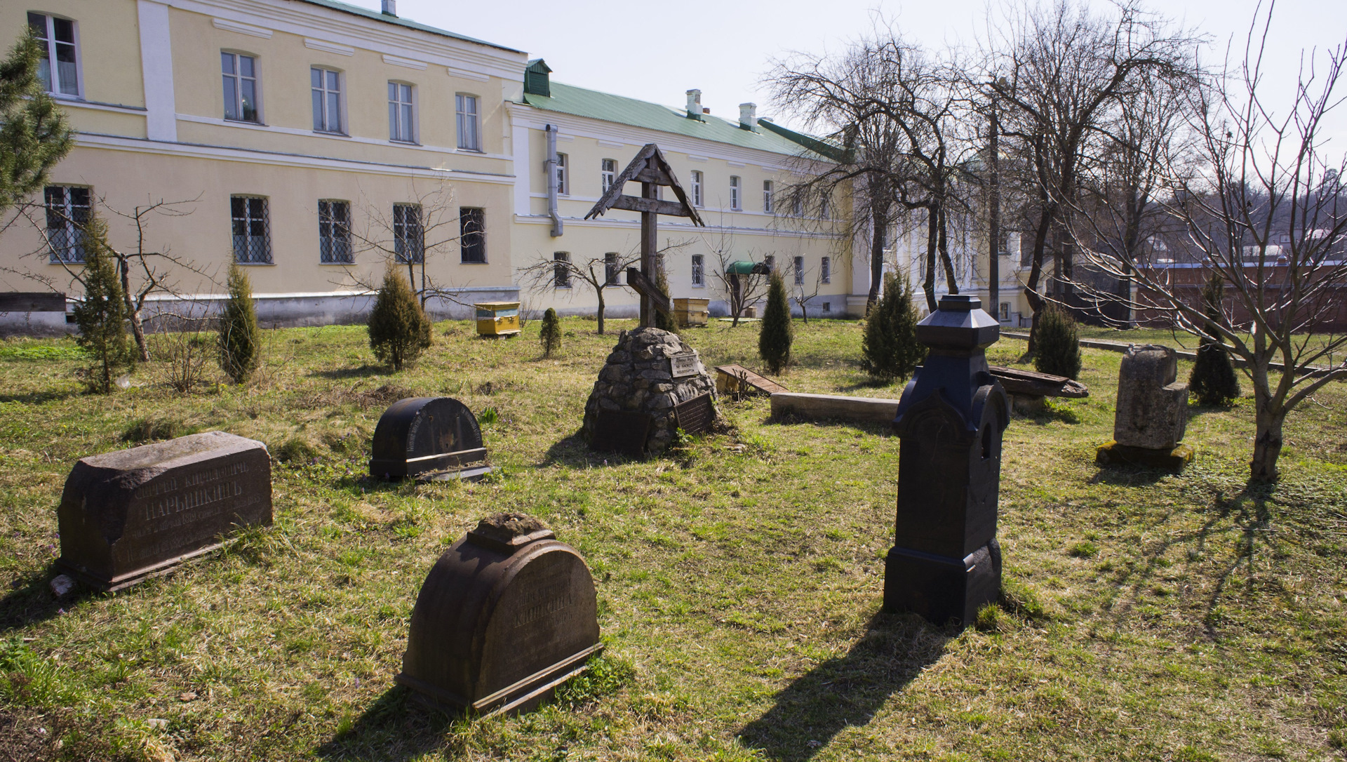 Раньше к главному дому вела Парадная аллея, теперь ее нет, остались только огромные низко спиленные пни. Не осталось и голубых елей неподалеку. Все деревья, кроме одной единственной елки "пожрали жуки" и специалистам ничего не оставалось, как их спилить.