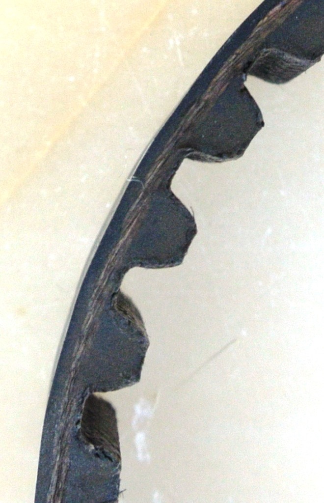 Вот так выглядит подделка ремня ГРМ GM 95522524. Дополню комментарий автора фотографией, которой у него не было. Купил "оригинальный" комплект в украинском экзисте, оказалось подделка. "Конь" совсем нечёткий. Так же натяжной ролик -левак. Подробнее здесь: q-uasar