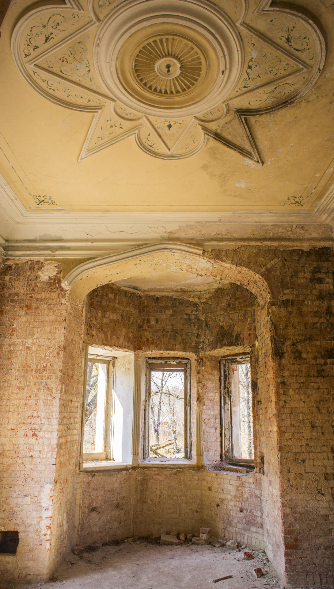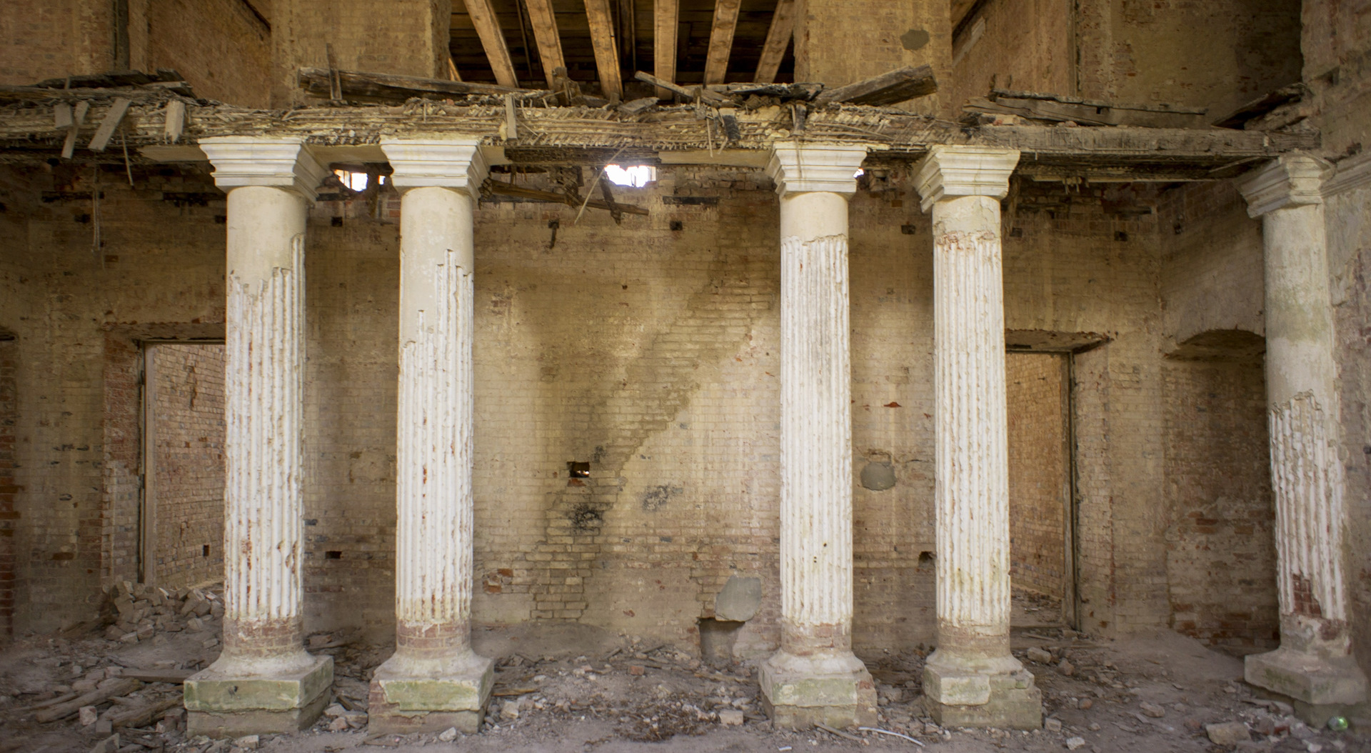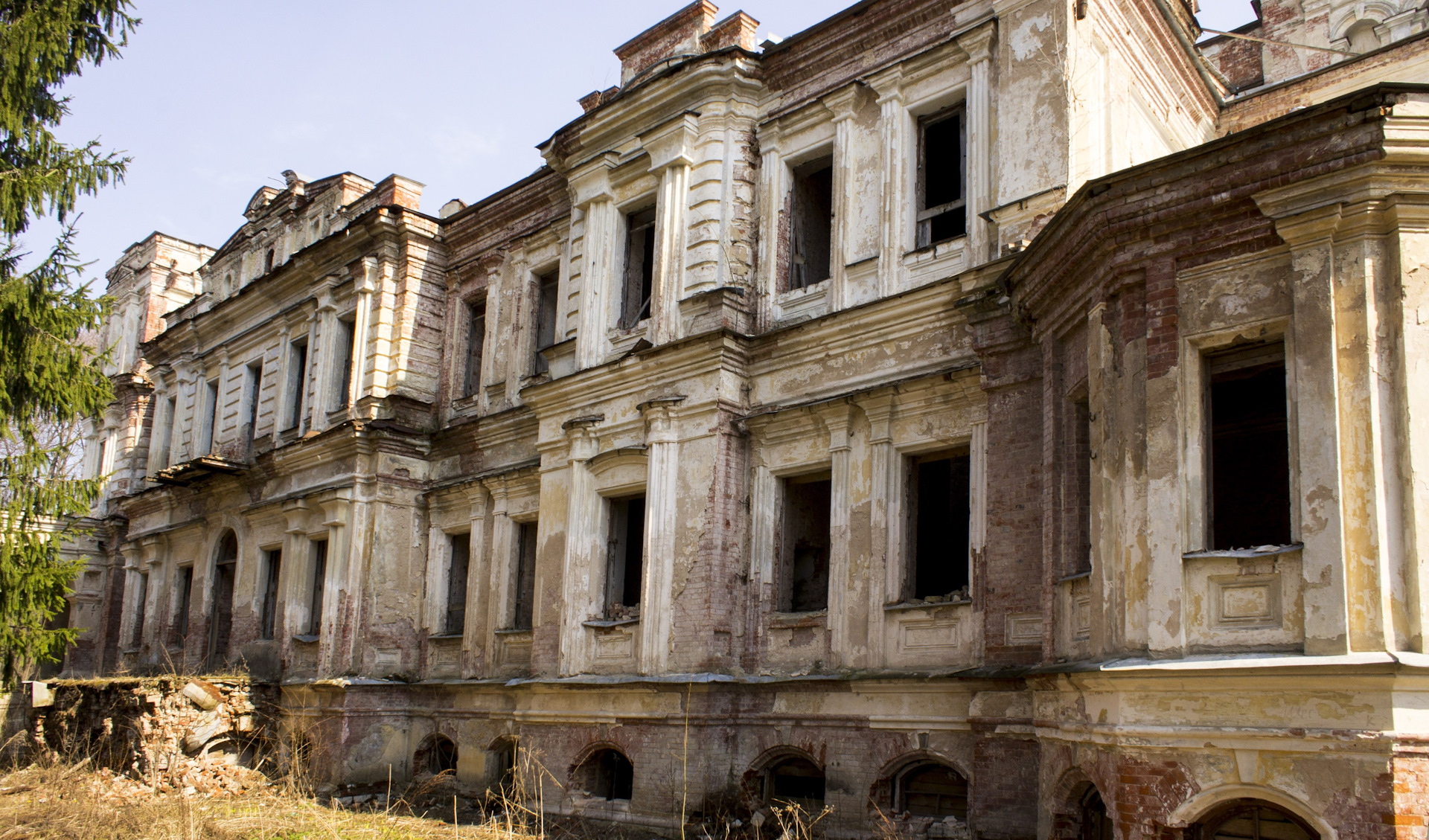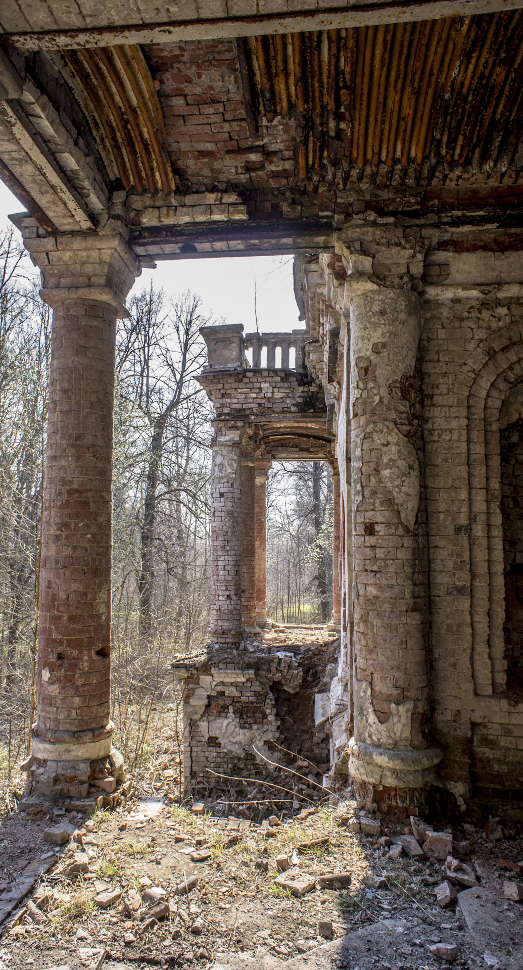 Главный дом представлял собой эклектичное нагромождение колонн и балконов, с интерьерами, оформленными в различных стилях (утрачены). Сейчас это огромная, но еще крепкая руина по которой невероятно интересно бродить.