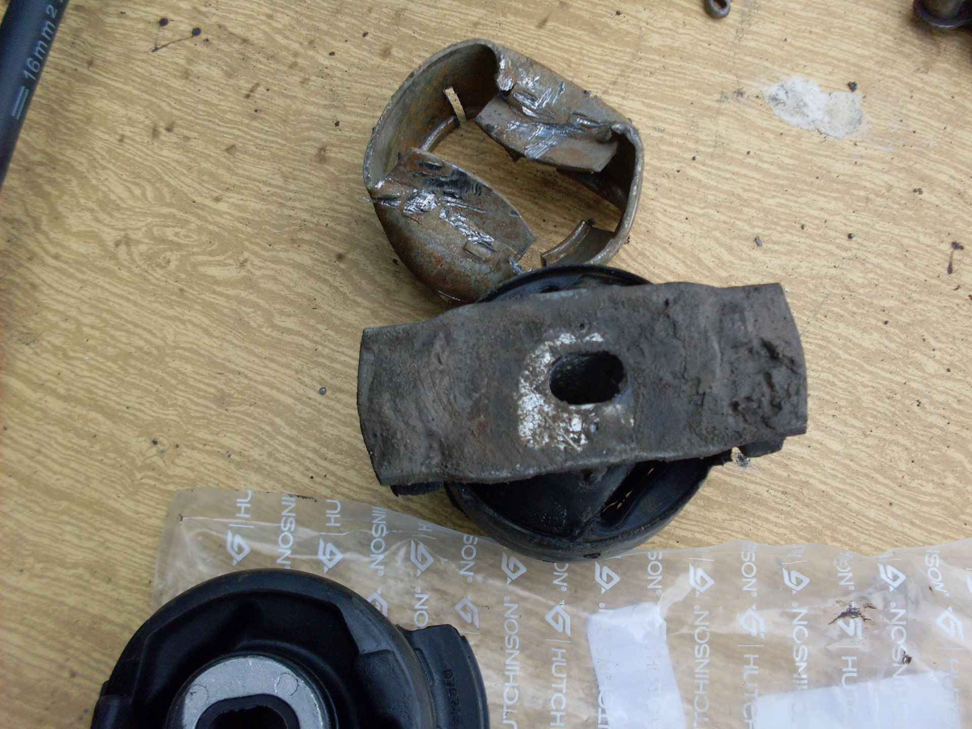 в очередной раз у меня оторвались салентблоки в задней балке будь они неладны. Стояли салентблоки РУВИЛЬ прошли они примерно 23тыс км мне тогда при покупке сказали что качество у них хорошее(. Но до них были САСИК и также прошли примерно по пробегу а цена в два раза больше. Поэтому на этот раз я решил взять хадчансон надеюсь что они походят нормально. Рувиль оторвались от наружней обоймы она была выбита зубилом. И были установлены новые).
