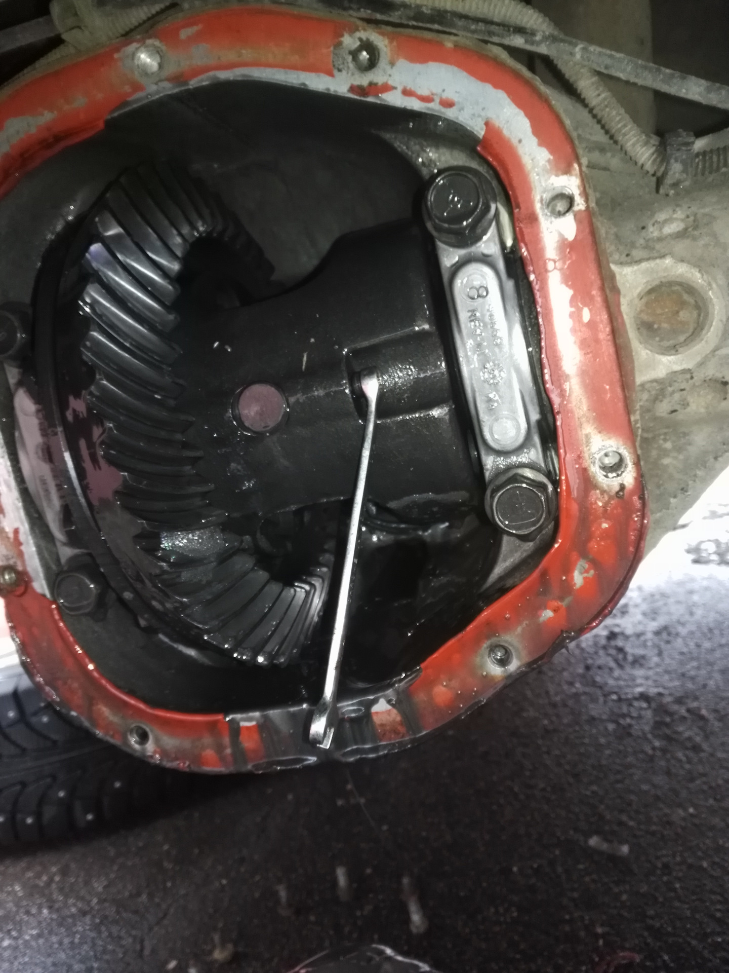 — откручиваем все болтики крышки дифа кроме верхнего,