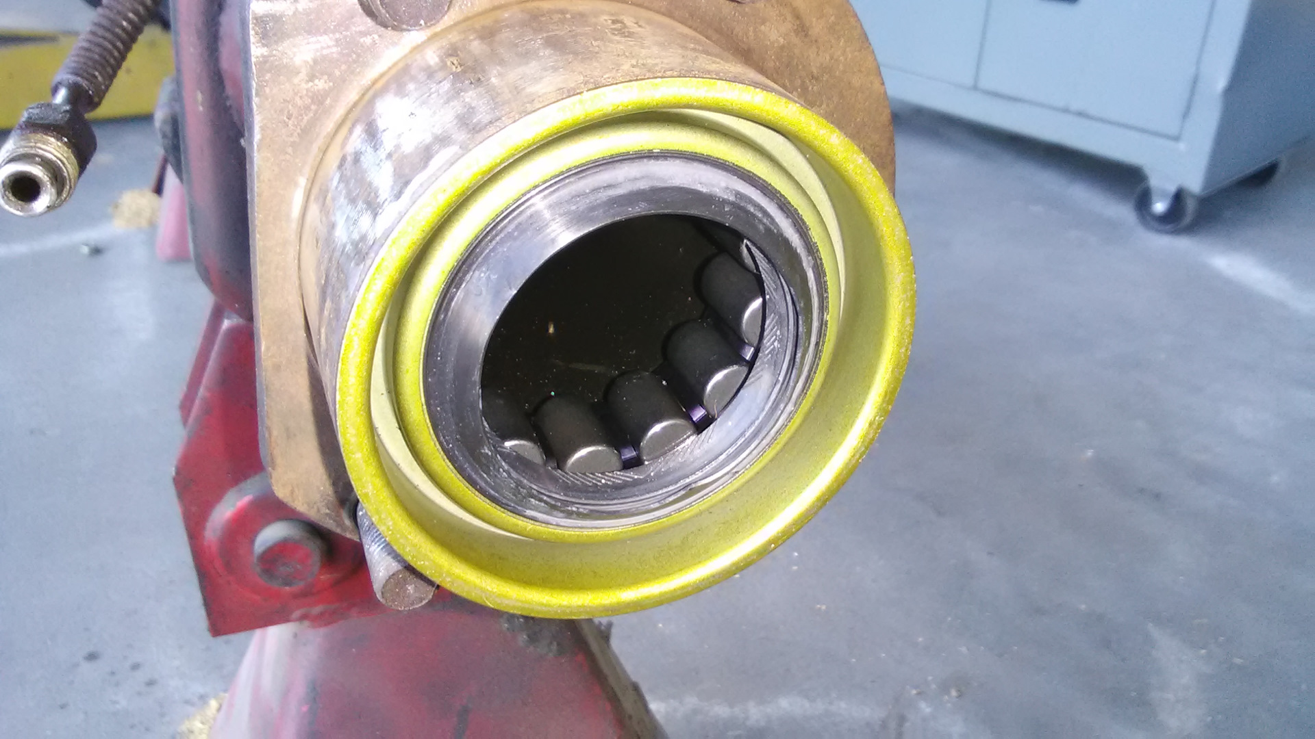 Чтобы распиленная часть не ржавела, задул ее чОрной краской, пока сохнет — самое время заколупать обратно в чулок новый подшипник и сальник.