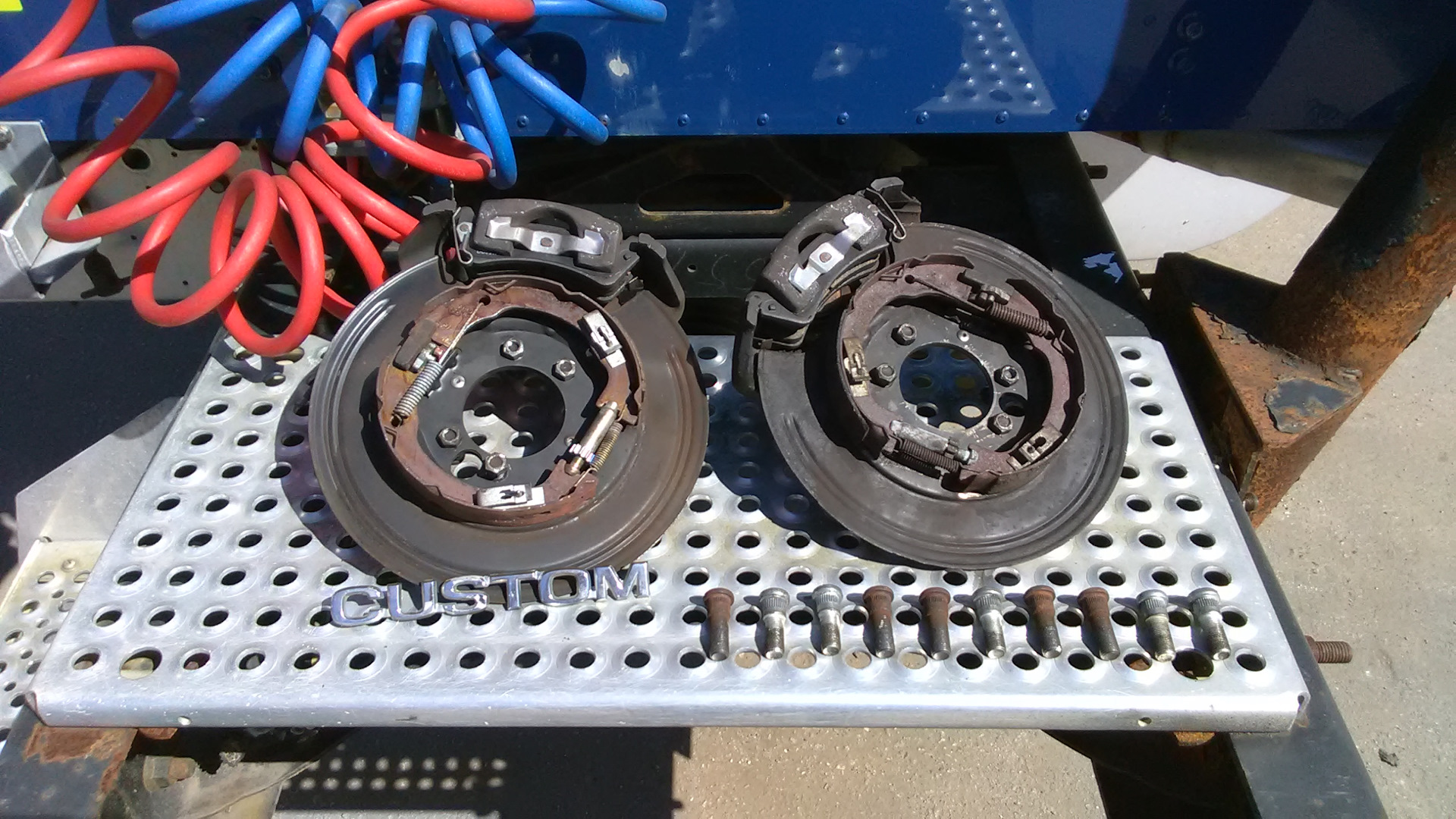 Шпильки крепления барабанных и дисковых тормозов отличаются по длине примерно на 5 мм. Меняем их.
