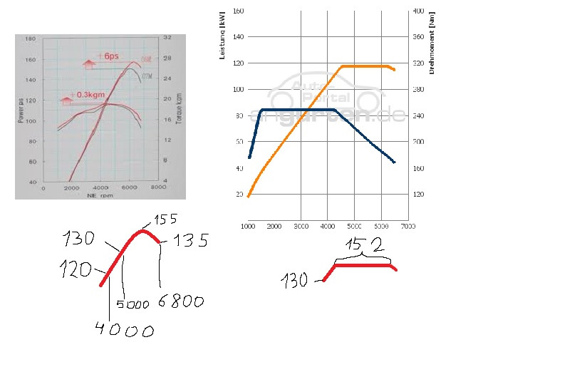 Ну тут нет "ошибок" в мкпп, первые три передачи не так разнесены как у хонды а это уже ощутимый плюс. и если глянуть график, то видно что на TSI моторах 80% времени мощность пиковая на разгоне, только при переключении на вторую мощность падает до 130 л.с а уже при переключении на третью, шкода даже не вываливается из полки мощности и метелит постоянно на 152 силах (лишь перед отсечкой есть небольшой провал) а не как аккорд который только на 6000 проскакивает через точку максимальной мощности 155.