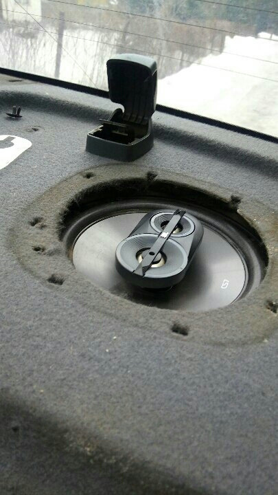 Приятный сюрпрайз от предидущего хозяина. Динамики стояли с подиумами, выломал из них старые, доработал подиумы кусачками и jbl встали на ура. В задней полке . Звук офигенный)))