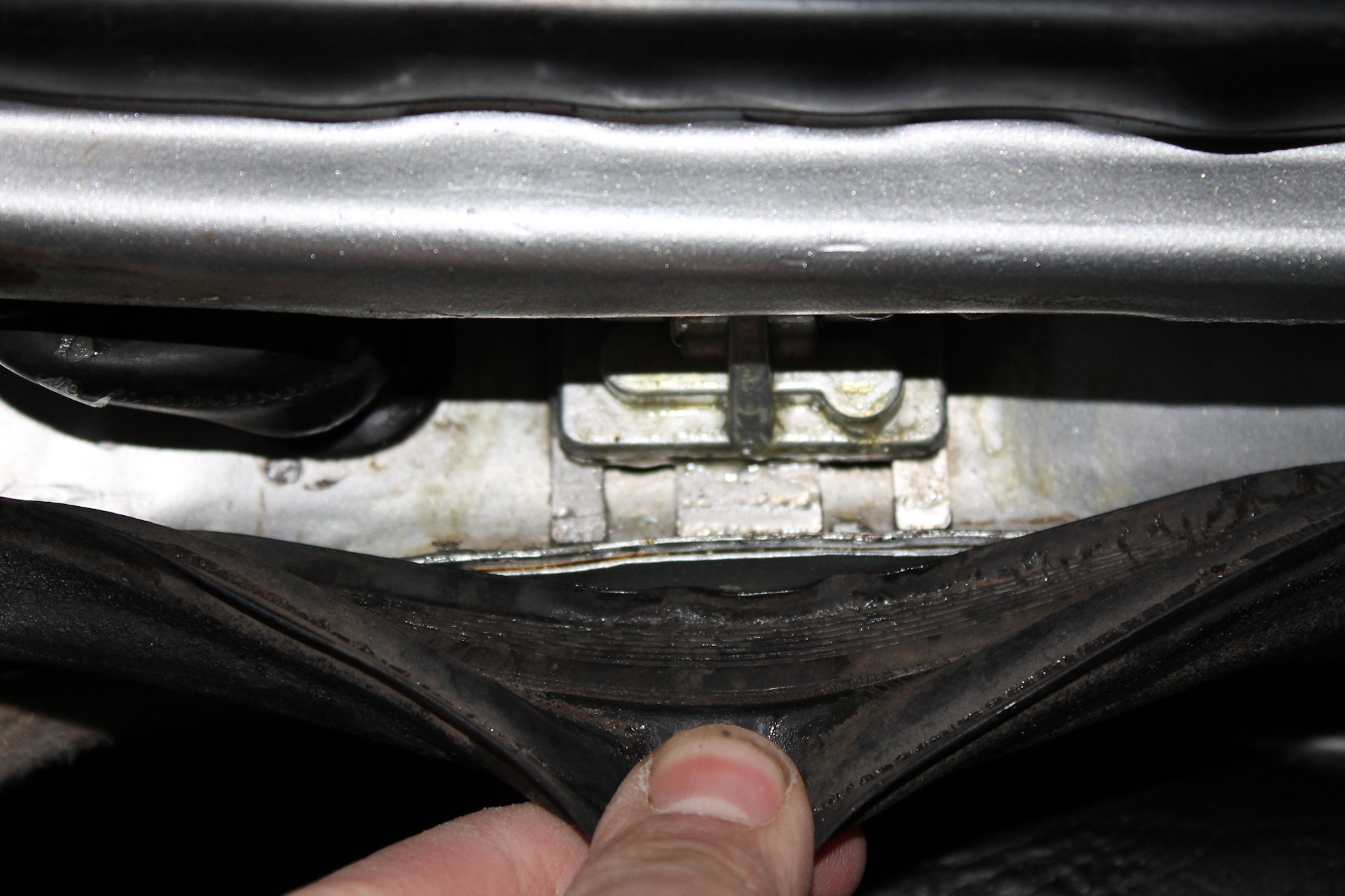 Снимаем уплотнитель крышки багажника для того, чтобы было видно петли.