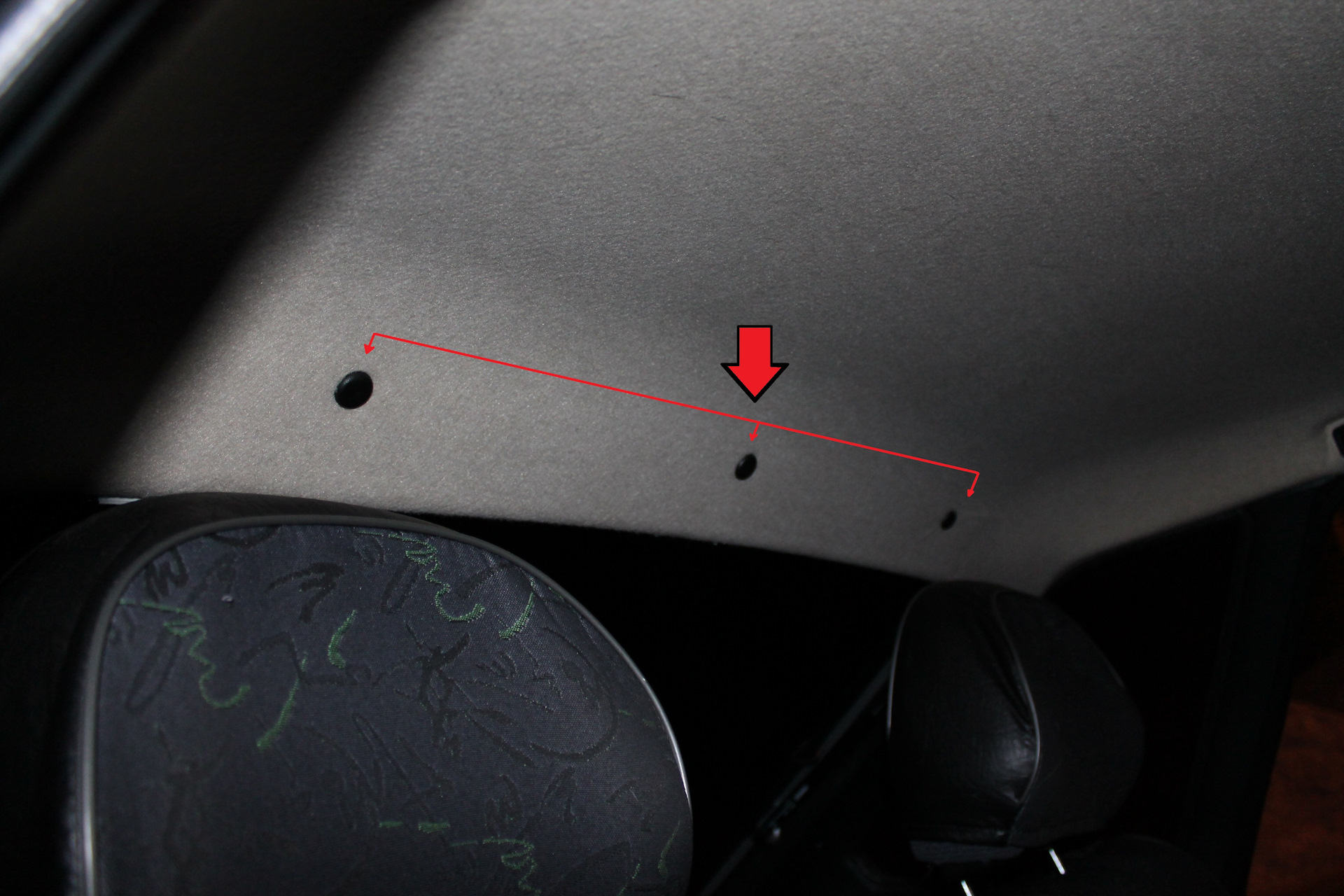 Откручиваем большой крестовой отверткой по одному крайнему болту крепления потолочной ручки. (см. рис)
