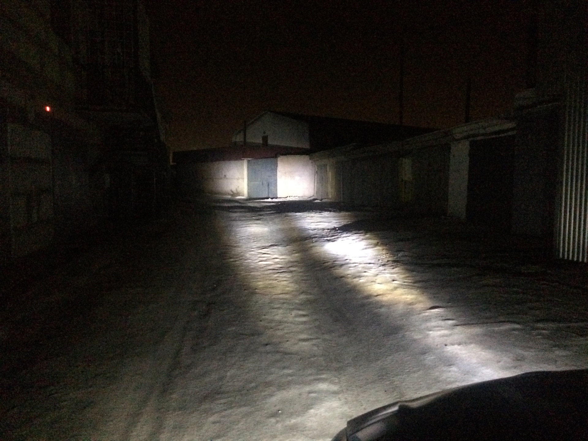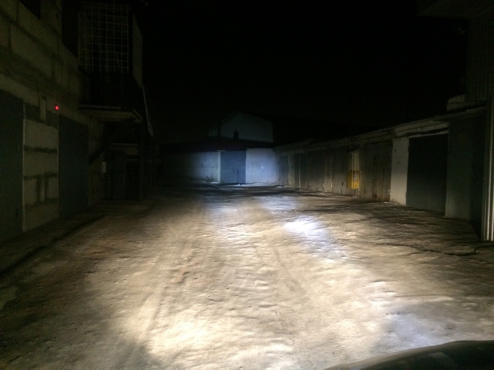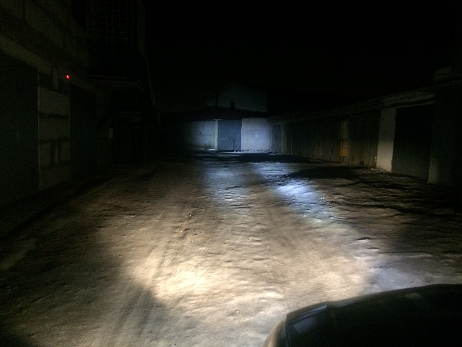 Попробовав прожектор в деле, был немало удивлён его избыточной мощностью, с расстояния в 150 метров на 9-этажном доме яркое пятно размером 3 окна на трёх этажах. Естественно с этим пришло понимание что использовать такой прожектор для успокоения едущих сзади идиотов не то что бы не стоит, а и очень опасно.