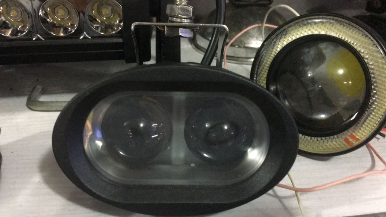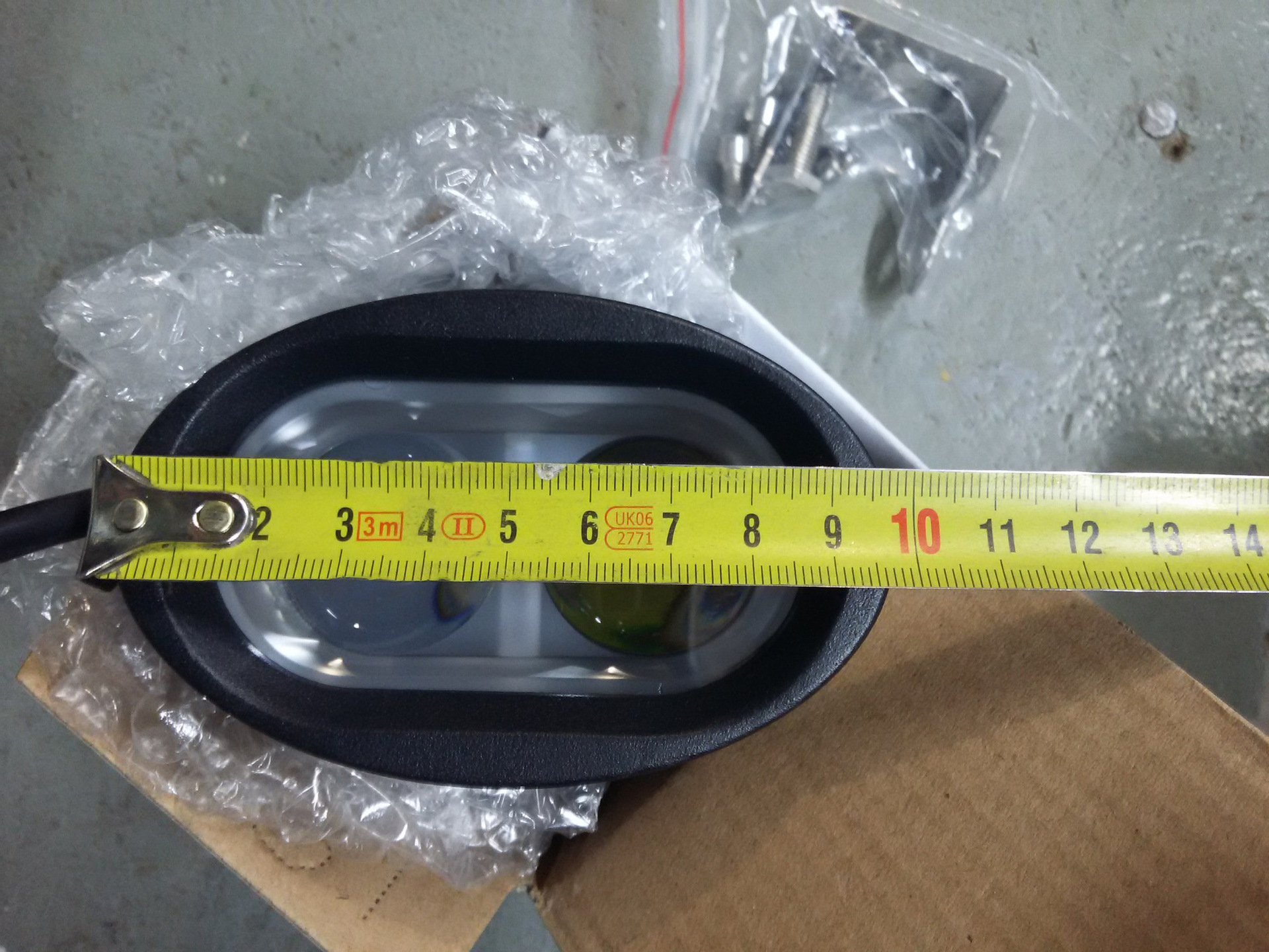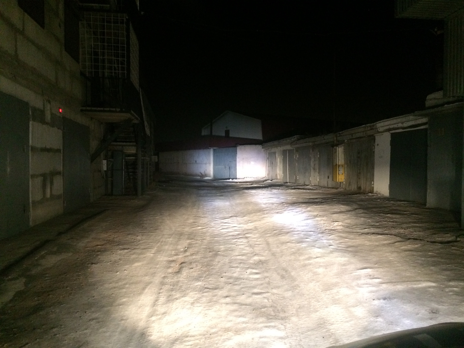Попробовав прожектор в деле, был немало удивлён его избыточной мощностью, с расстояния в 150 метров на 9-этажном доме яркое пятно размером 3 окна на трёх этажах. Естественно с этим пришло понимание что использовать такой прожектор для успокоения едущих сзади идиотов не то что бы не стоит, а и очень опасно.