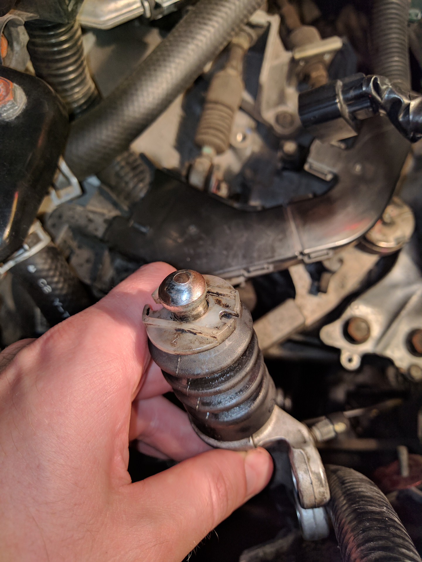 Не тут-то было! Толкаясь в пробке услышал его! Мерзкий скрип при отпускании сцепления перед самым схватыванием и педаль пошла немного рывками. Прикатил домой, на выключенном движке понажимал педаль — скрип шел из-под капота, а не в салоне. Пшикнул WD-40 и силиконкой в шарнир ИЦС и вилки сцепления — скрип ушёл, но только на день. Противный скрип мотал нервы и терпение кончилось практически моментально.