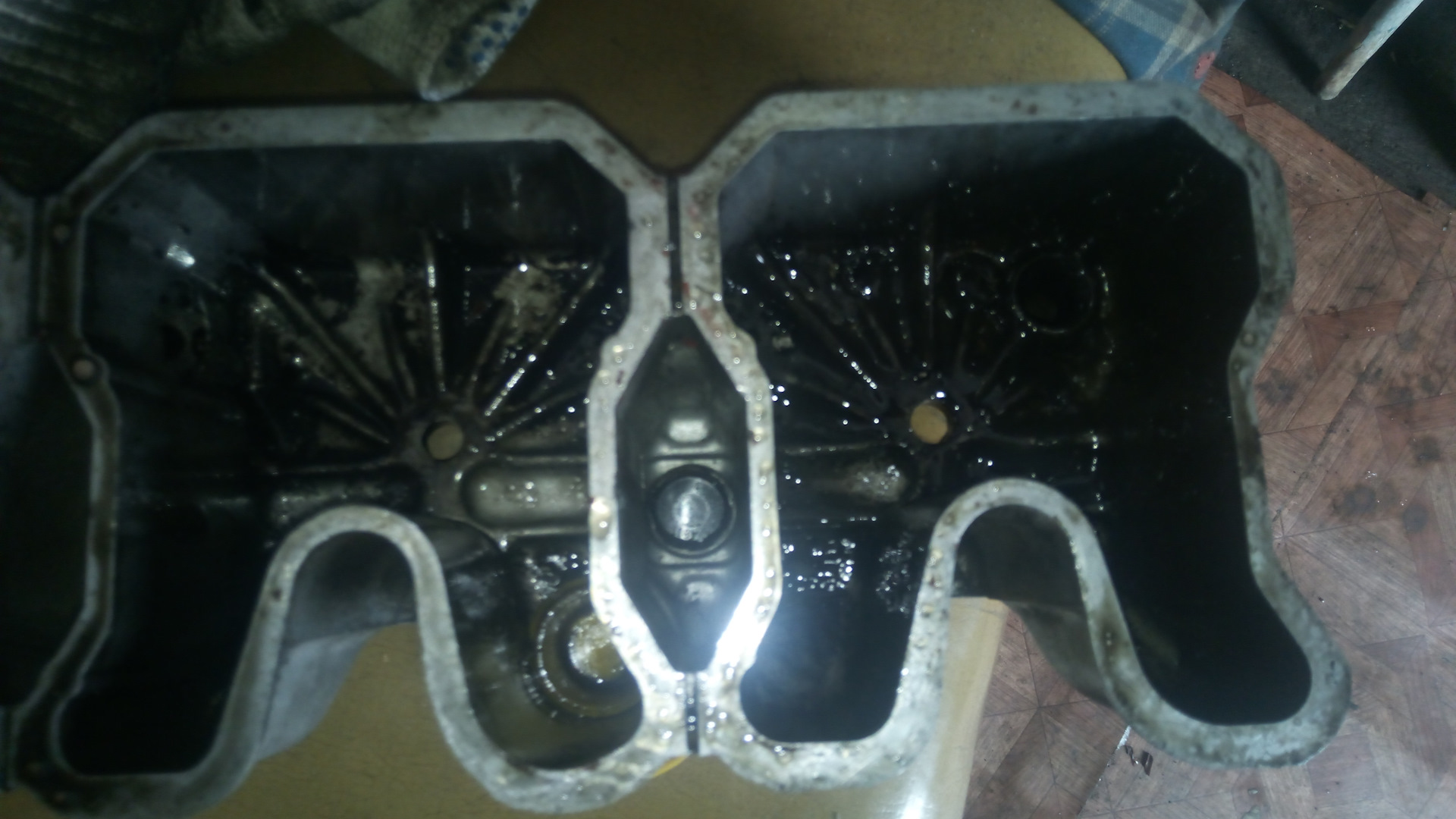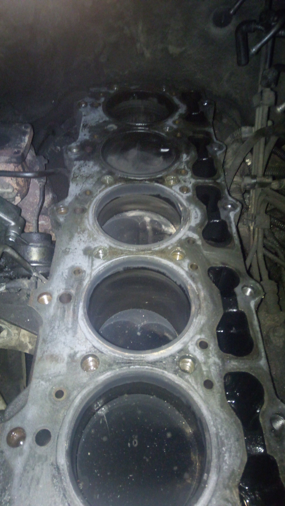 Копаем дальше, сняв клапанную крышку видим в районе первого цилиндра эмульсию.