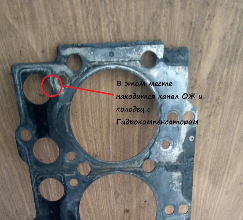 Осмотр прокладки ничего не выявил, смутило только близкое расположение канала ОЖ и маслянного(колодец гидрокомпенсатора)