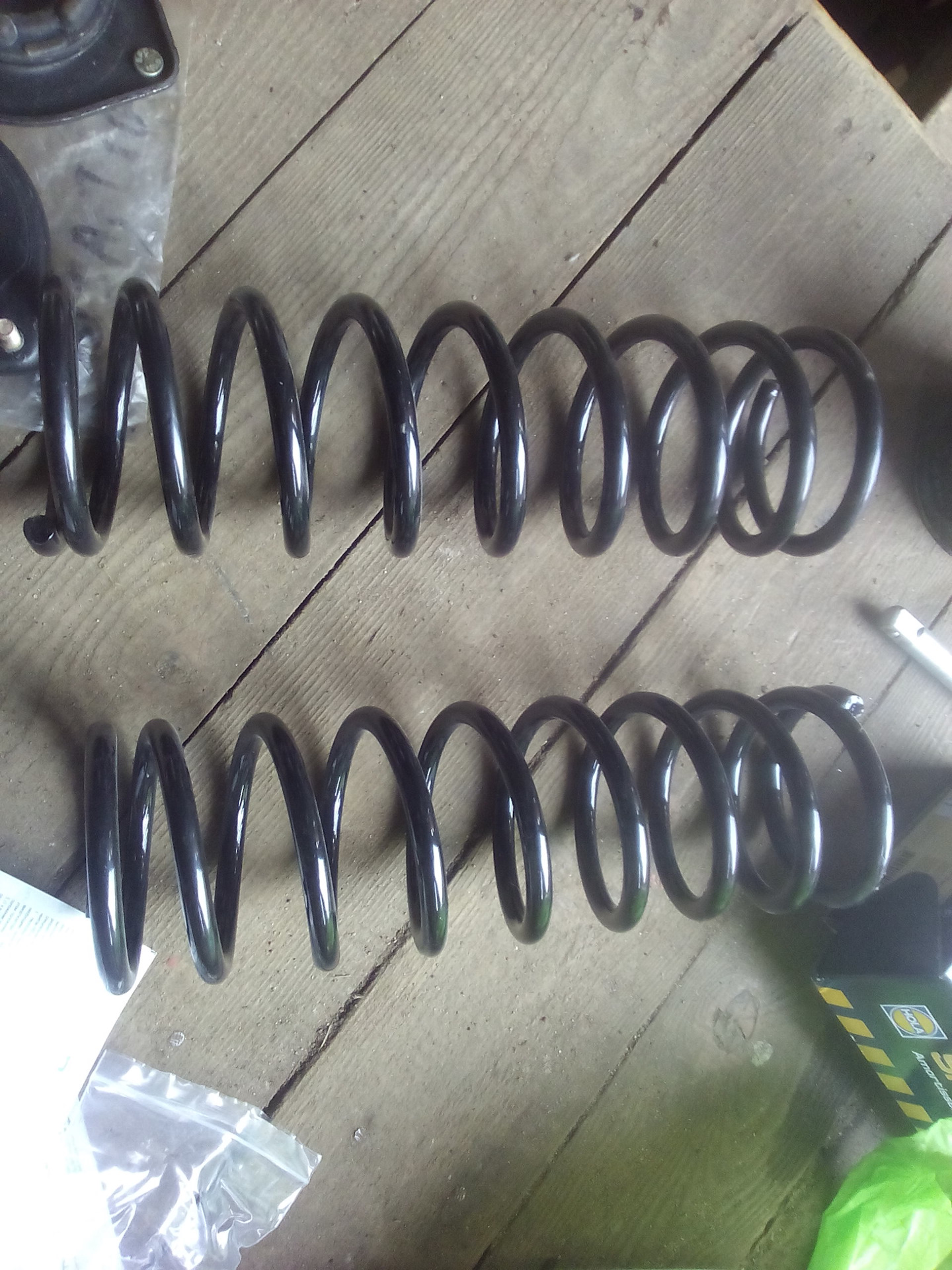 Полистав, посмотрев Решил делать как и многие приподнять пружинами от ОКИ. Както-так www.drive2.ru/l/3963841/. Походив одни выходные по рынку (Жданики), выяснил, что большинство магазинов ЛАДА закрылись, а пружин от ОКИ (Лада 1111) нэт. Ну да ладно нет на рынке- в городе найду, уехал. На протяжении недели расспрашивал у знакомых где магазины есть жигулевские. Выбрав вечер посвободнее поеехал. Но поездив посмотрев выяснил, что многих магазинов уже нет, многие стали универсальные (масла, фильтра и т.д. и т.п.) На неделе позвонил своим знакомым ребятам и заказал амортизаторы Hola s463, думаю потихоньку найду. Шло время, пружины так и не нашел. Дома не сиделось, поехал в гараж, думал прокинуть проводку под переднюю камеру. Приехал только…, звонок, приезжай свои амортизаторы забирай. Все бросил, поехал.