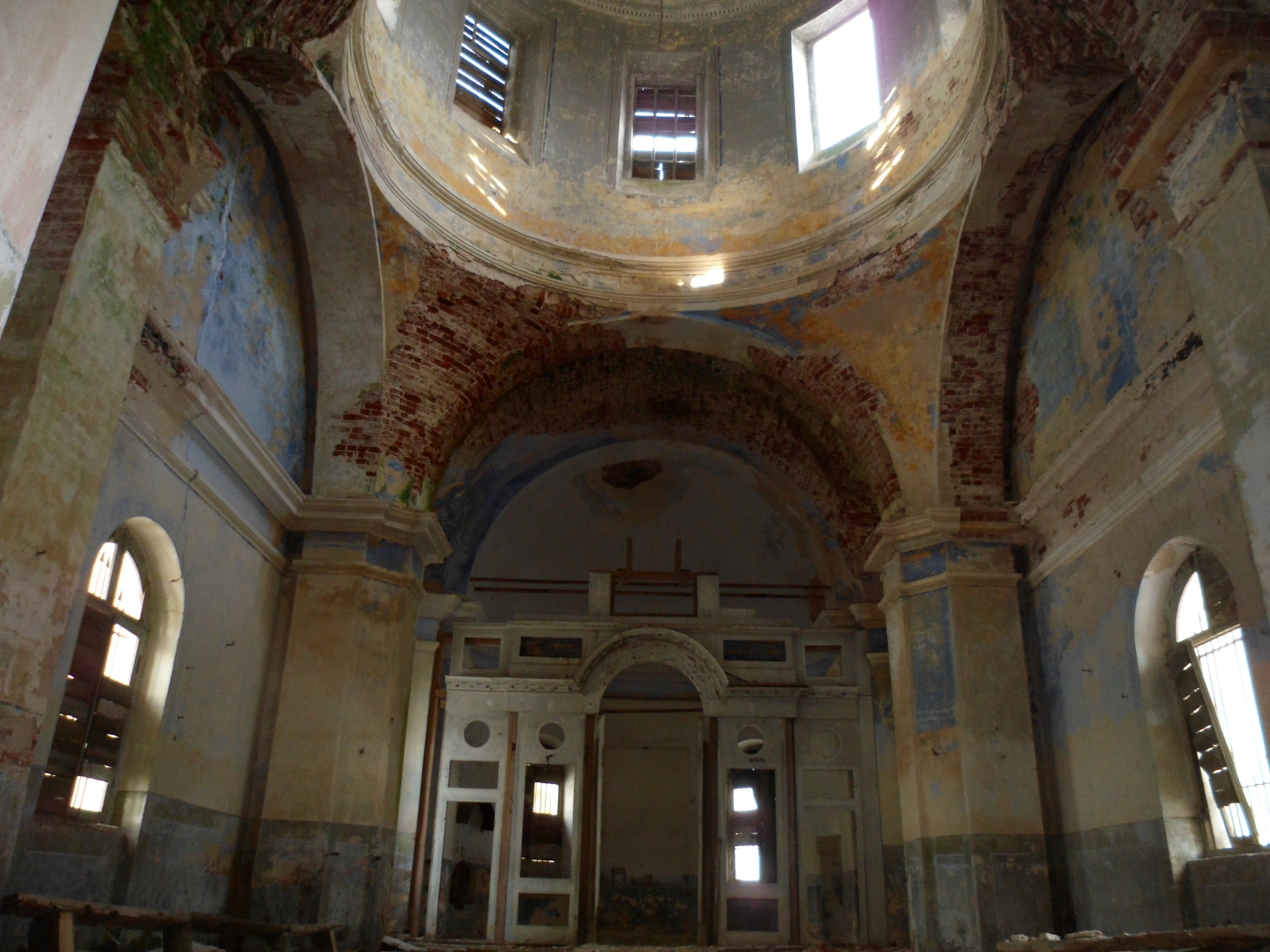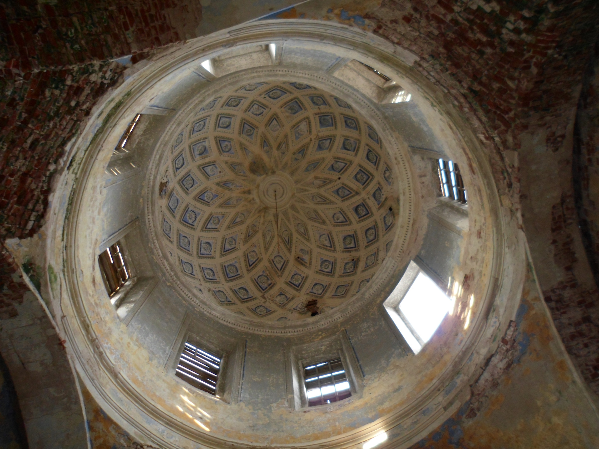 Внутри сохранились рама иконостаса и замечательный купол с гризайлевыми кессонами. Роспись подновлялась в конце XIX века, с сохранением старого рисунка
