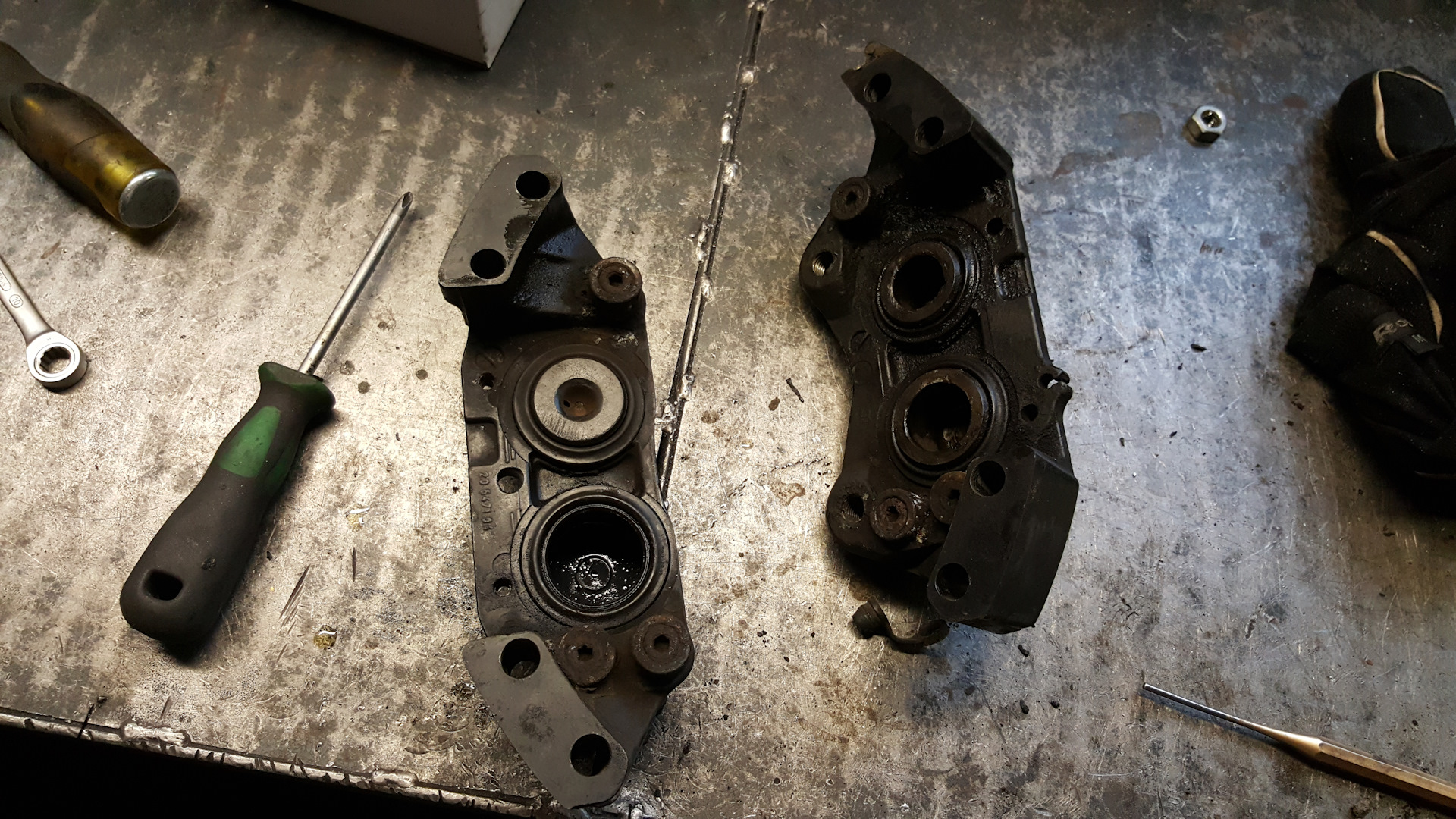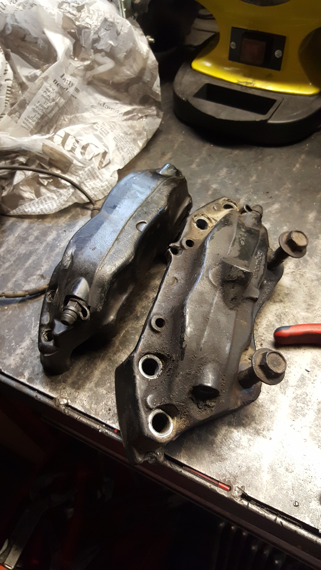 Пока было свободное время, вытащил из своего закрома суппорта от бмв e38, которые купил 3 года назад за 45 евро. Почему купил? Хотел чтобы было эффективное торможение без перегрева. От порше, ауди и альфы варианты не хотел рассматртвать по их цене, меня интересовал вариант проще и без составных дисков, чтобы было болт-он как бы. Скажем диски от астры H OPC 321×28