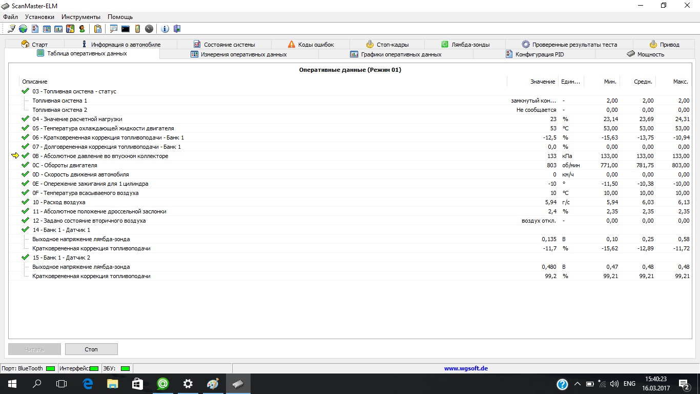 Система впрыска какая? ME? ибо HFM обычным адаптером ELM327 не тестится!