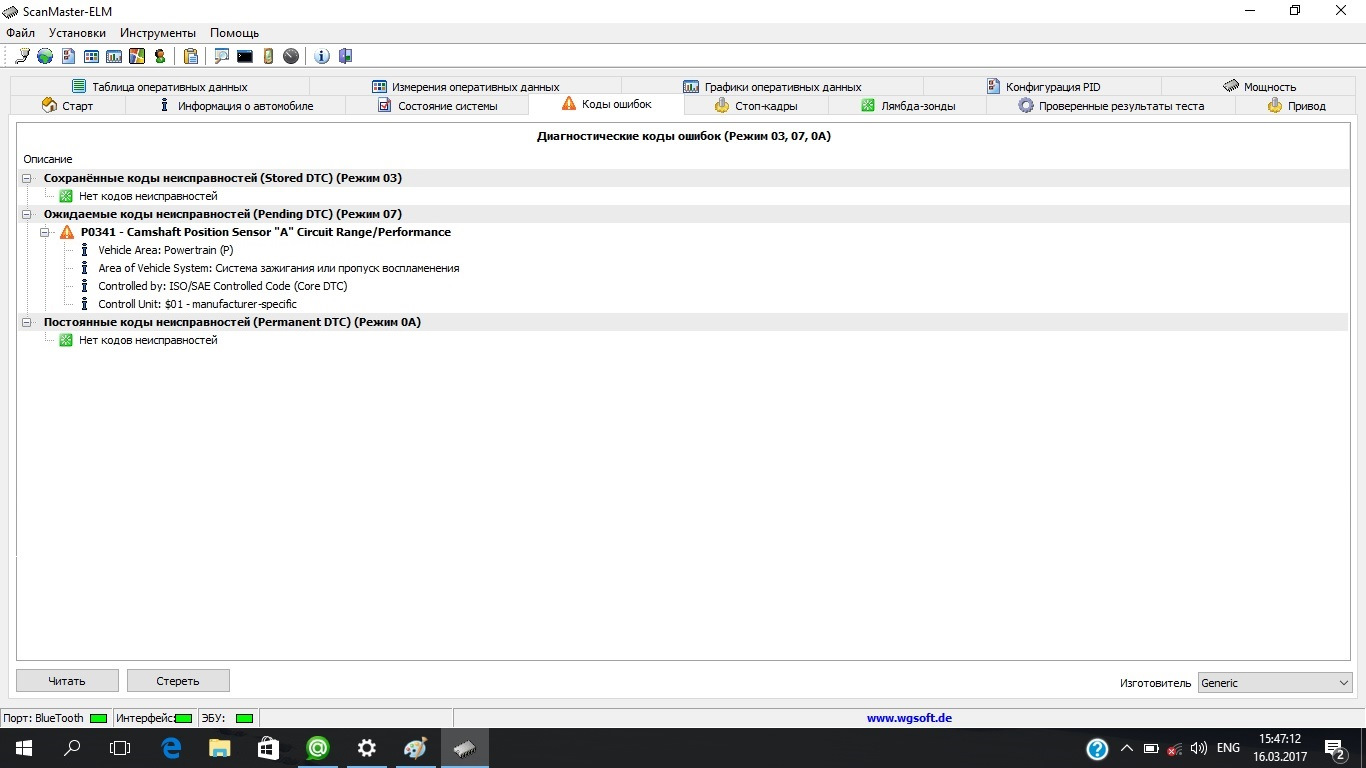Ошибка "P0341" у меня так и не стерлась и весит постоянно, при этом мотор работает и едет вроде нормально, единственная проблема в небольшом плавание холостых оборотов, и бывает что иногда глохнет сразу после запуска со второго запуска уже все нормально. Обозначает она если правильно нашел "Неправильные показания / не отрегулирован датчик положения распредвала"