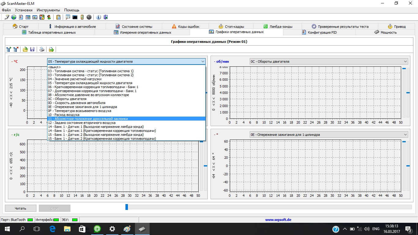 Собственно что вообще в ней можно посмотреть относительно работы двигателя. Можно посмотреть параметры работы и показания различных датчиков, как просто списком, так и в виде индикаторов и простеньких графиков (по умолчанию их 4 можно в настройках отобразить больше).
